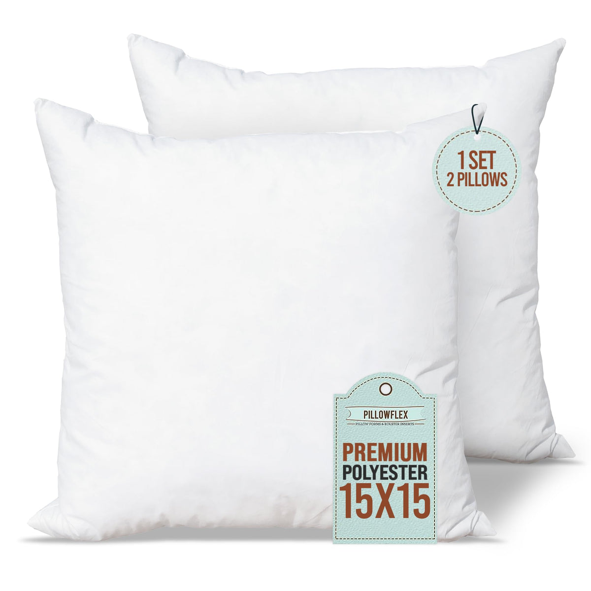 Pillowflex Set Of 2 (15X15) Premium Polyester Pillow Inserts - European Square Pillow Forms, Machine Washable, Sham Pillow Inser