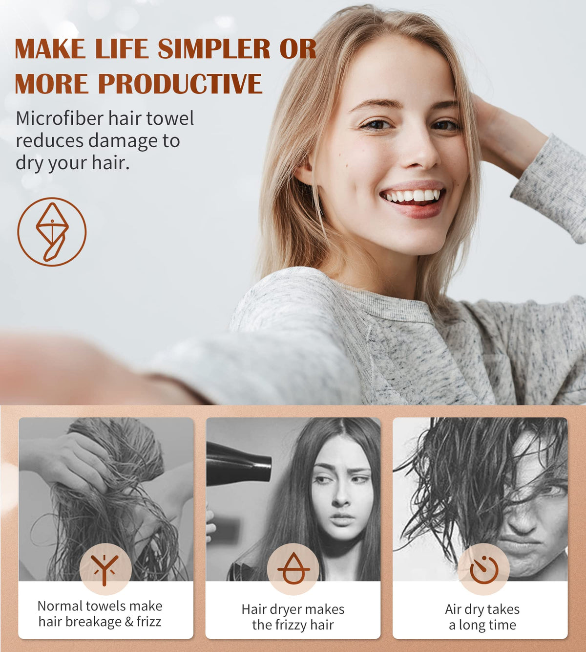 Popchose Microfiber Hair Towel Wrap, Fast Drying Hair Turban, Soft Ultra Absorbent, No Frizz Hair Wrap Towels For Women Wet Hair