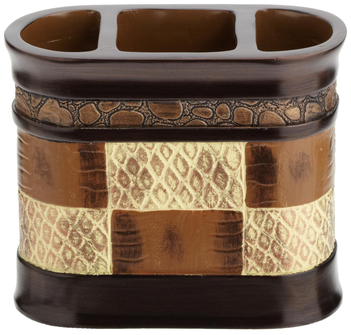 Popular Bath Zambia Collection Features A Decorative Animal Print Design And Includes Coordinating Bathroom Accessories (Sold Separately) To Create A Contemporary Look. This Toothbrush Holder Is Made Of Plastic Material Which Easily Wipes Clean. Measures Approximately 3' X 3' X 4. 5'.