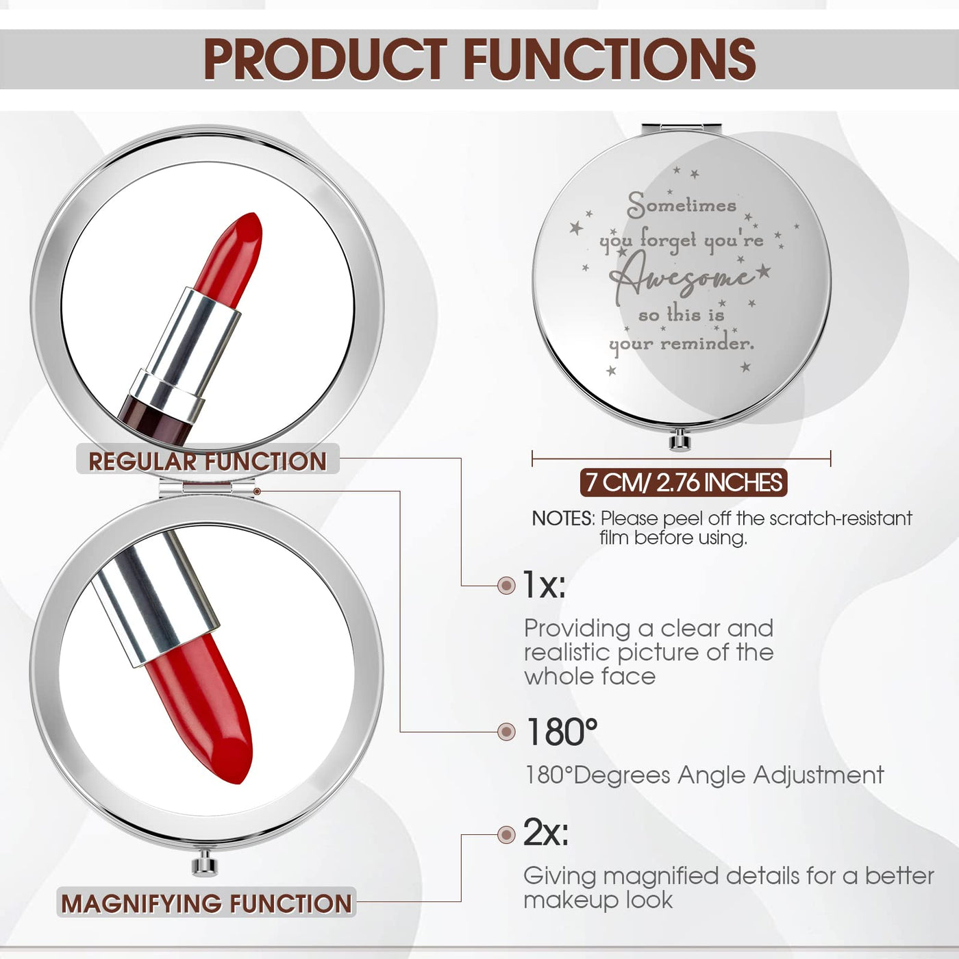 Q: What makes this mirror a great gift for women?A: This compact mirror features inspirational quotes that remind users of their worth, making it a thoughtful appreciation gift for female employees, coworkers, friends, and family on occasions like birthdays, Mother's Day, or graduation.
