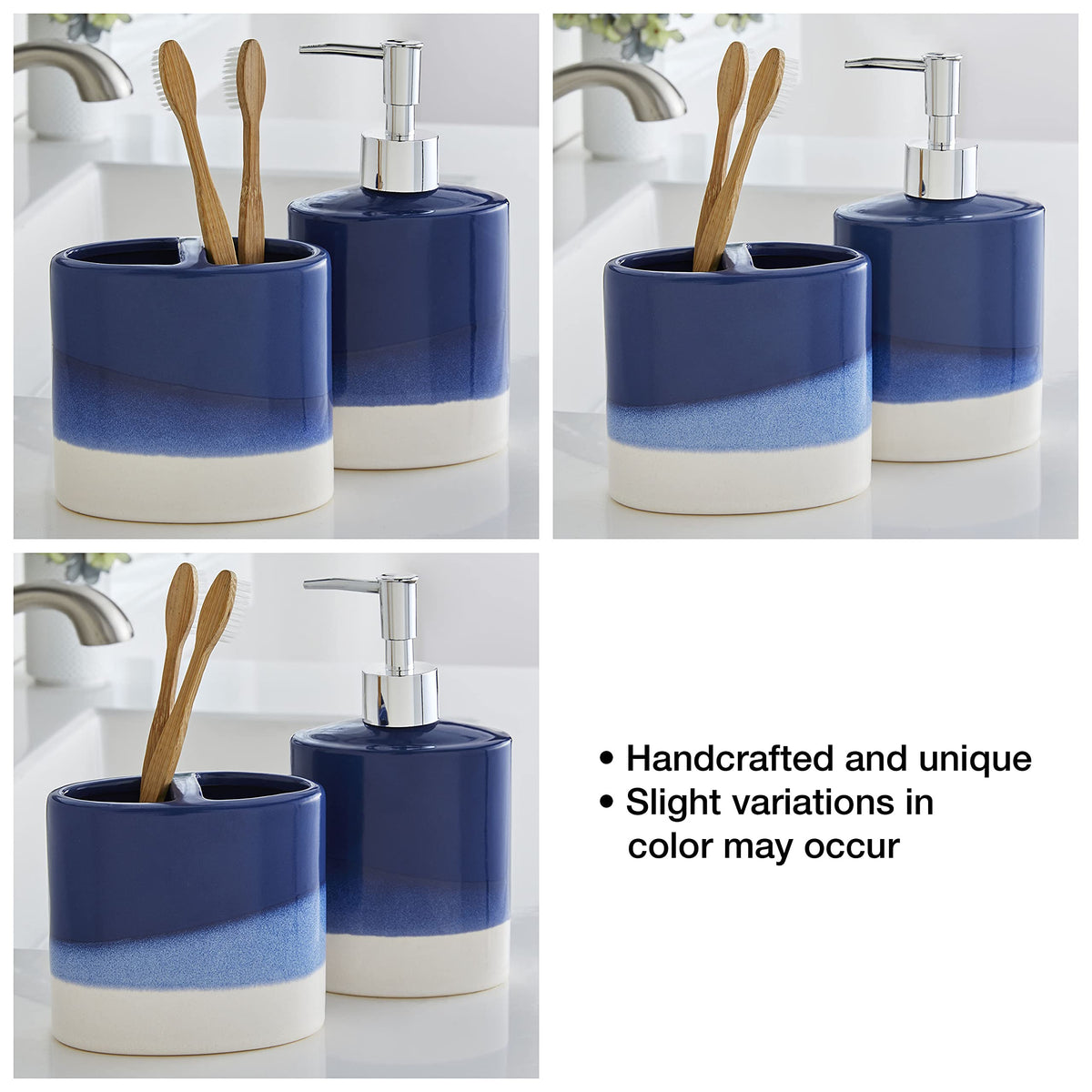Q: Can the Alanya Toothbrush Holder match other bathroom accessories?A: Yes, the stylish blue and white tones of the Alanya Toothbrush Holder can complement various bathroom decors, especially when paired with the Alanya lotion dispenser.