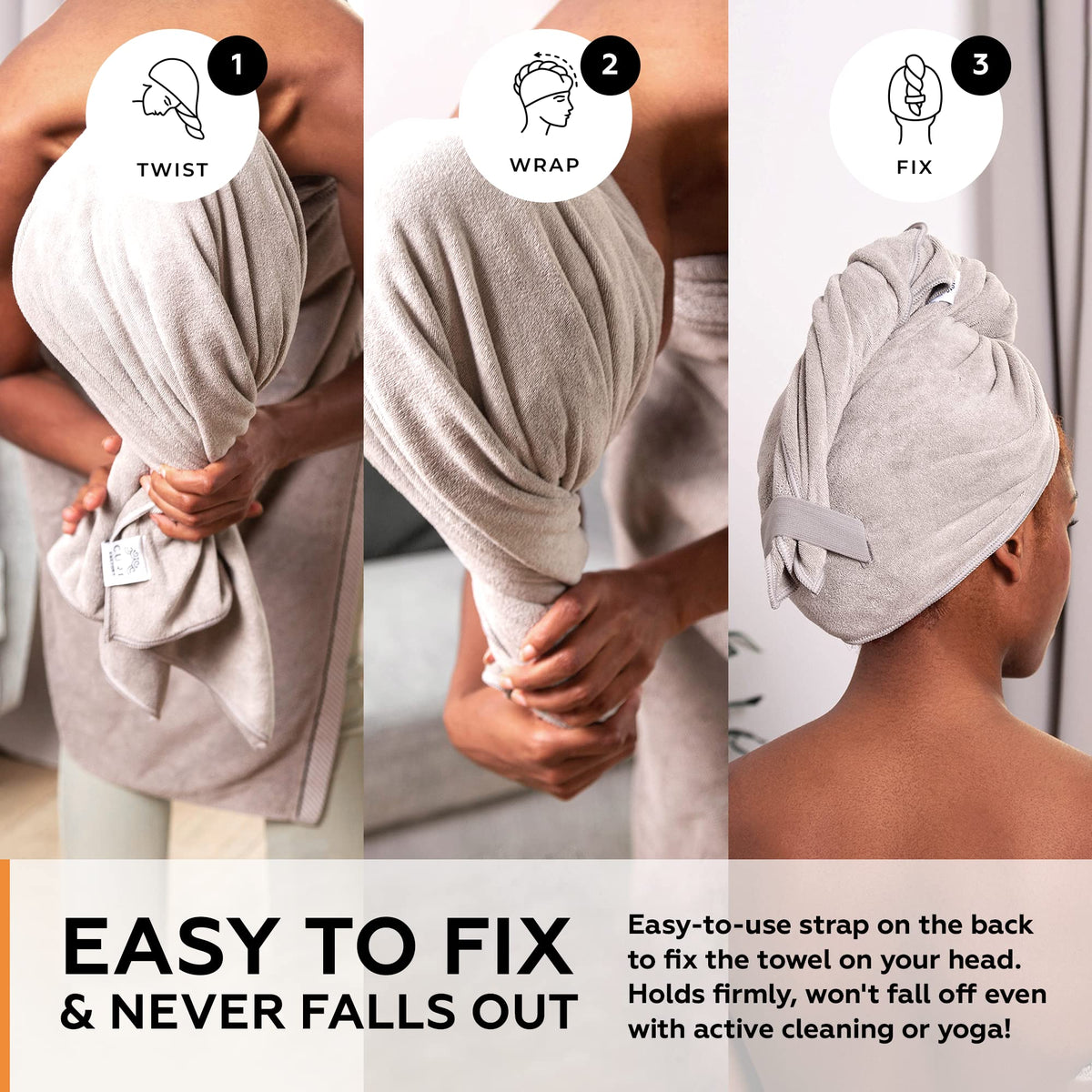 Taking Care Of Healthy Curls Without Breakage, Frizz Or Drying Out Thanks To Gentle And Absorbent Texture Of Quality Microfiber Reducing Drying Time By 50% So You Always Have Time To Relaxing, Self-Care And Family Comfort Hands-Free Multi-Tasking With Easy-To-Use Strap To Fix The Towel On Your Head. Holds Firmly, Won'T Fall Off Even With Active Cleaning Or Yoga! Size 20X40 Inch - For All Hair Types And Lengths, Including Yours! Super-Soft And Light, So At Only 7.5 Oz You Almost Doesn'T Feel It On A Head. Ideal For Wrapping, Plopping And Squeezing. One Towel For All Techniques. It'S A Win-Win For Your Curls! Microfiber Drying Towel, Hair Wraps For Women Wet Hair, Hair Turbans For Wet Hair And Hair Drying Towel - Is Mostly Popular Hair Care Hair Products, Or Curly Hair Products. Curly Hair Towel, Hair Turban And Microfiber Hair Towel For Curly Hair Is Curly Girl Method Approved Products, So You Always Know That Your Coils, Waves Or Tight Thick Textured Hair Is Healthy. Even If Thin, Fine And Small Curls You Can Make Plopping And Wrapping, Because Of Large Microfiber Towels. The Perfect Haircare Towel, We Think It Better Then Shower Cap For Curly Hair. Just Wrap, Twist And Tuck With Our Elastic Band. Can Be Used On Shower Or Bath. Best Rapid Dry Towels With Buttons For Magic Plop And Care, Toalla Para Cabello, Towel For Wrap Around For Black African American Woman, Mujer, Kids, Man