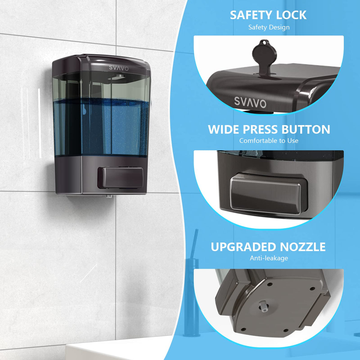 Are You Tired Of Cleaning The Shower Bottle Clutter Or The Mess Around The Kitchen Sink? Are You Fed Up With The Bottles And Jars Crowding Around Your Wash Basin And Occupying Too Much Space? If So, A Svavo Wall Mounted Soap Dispenser Will Be Your Best Choice Of Hygienic Solution. Svavo Wall Mounted Soap Dispenser Is Designed With Modern Minimalist Style To Help You Save Your Countertop And Corner Space. With The Abs Durable Material, This Product Can Provide Long-Lasting Strength And Use. And It Is Versatile Use For Household And Commercial (With The Lockable Design) Place, Applicable To Household Near Kitchen Sink, Bathroom Sink, Shower Or Wash Basin And Suitable For Holding Up To 700Ml Of Liquid Detergent, Hand Sanitizer, Shower Gel, Shampoo, Lotion, Etc.