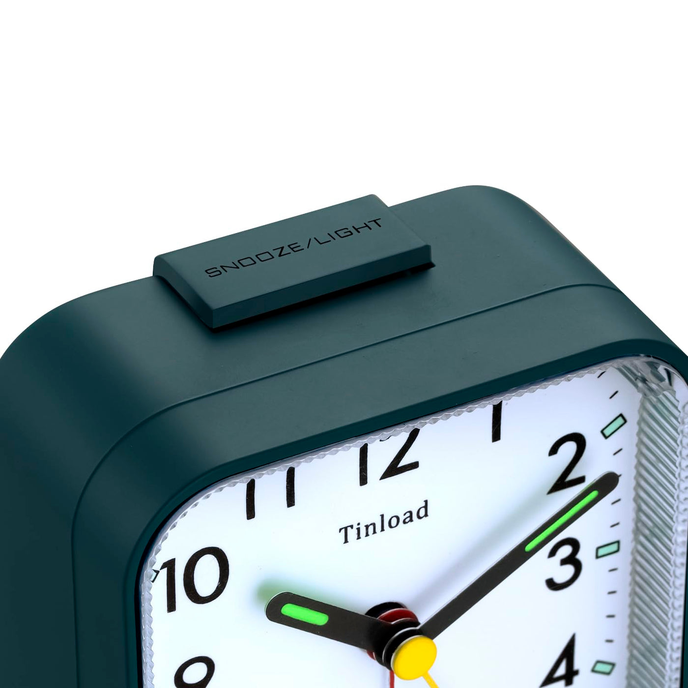 Q: What makes the Tinload Small Battery Analog Alarm Clock suitable for a quiet environment?A: The Tinload alarm clock features a completely silent design that eliminates the annoying tick-tock sound, making it ideal for those who need complete silence to fall asleep.