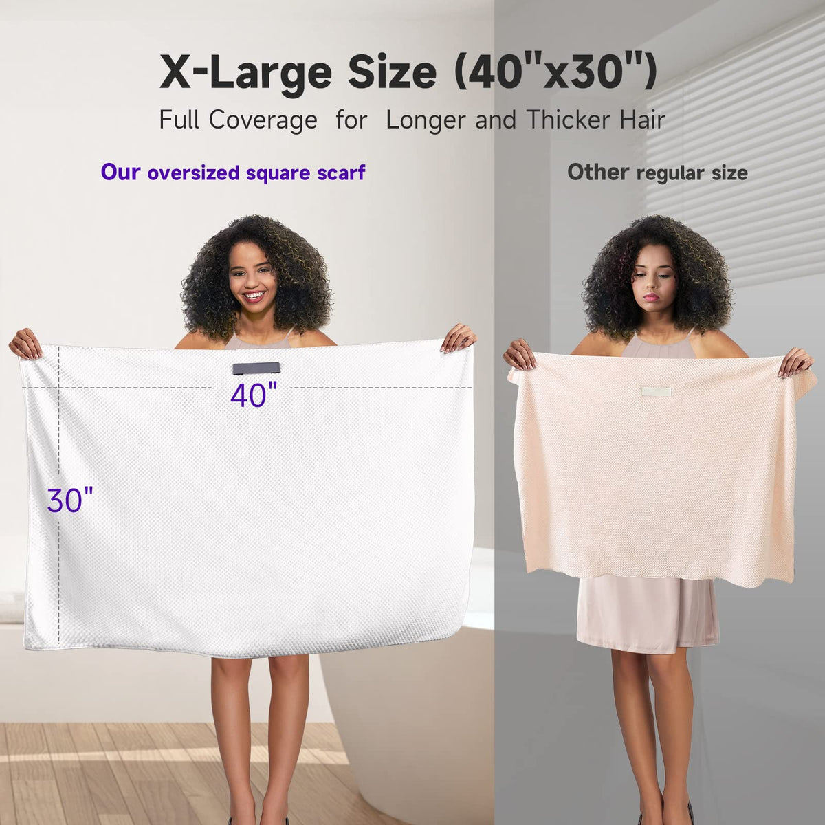 Q: What are the dimensions of the Umisleep Microfiber Hair Towel?A: The Umisleep Microfiber Hair Towel measures 40 inches by 30 inches, making it extra large and suitable for long, thick, curly, and wavy hair.