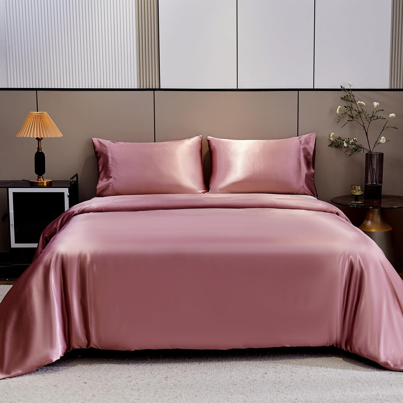 Aimay 3 Piece Satin Duvet Cover Set Bedding Sets King 1800 Series Luxury Rich Silk Silky Super Soft Solid Color Reversible Zippe