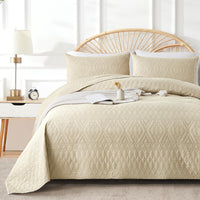This Geometric Design Quilt Set Features An Ultrasonic Process And 100% Microfibre Fabric Filling For A Soft And Comfortable Sleeping Experience. Machine Washable In Cold For Use At School Or At Home. Easy To Carry Around For Travelling Or On The Go, This Bedspread Is Lightweight In Thickness And Is Suitable For Use On Its Own In The Summer Or As A Layering Quilt In The Winter.