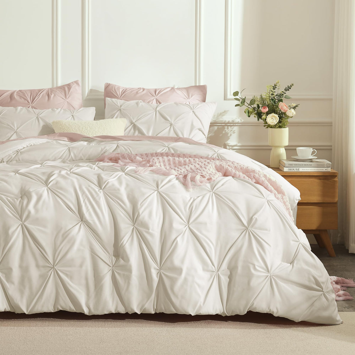 Andency Pinch Pleat Comforter Set. We are a professional manufacturer, aim to provide you with comfortable and high-quality bedding sets. We have the various styles of comforter sets, classic, unique, elegant style, or in sports theme, not only suitable for adults but also welcomed by the kids. You can definitely find one bedding set to meet your aesthetic taste. Here are our four advantages of Andency pintuck comforter set :1, Pinch Pleated Design: This Comforter Set is designed in pinch pleated style, combines Style and Beauty perfectly together, which adds unique and fashionable taste to your bedroom. Pintuck Style Comforter is classic and eye-catching, which can perfectly be integrated with the decoration of your bedroom.2, Soft Microfiber: This comforter set is made from microfiber, which is cozy, soft, and smooth. The microfiber comforter comes with the warmth of other fabrics, but it avoids the heaviness. It is lightweight for all-year-round use.3, High Quality and Good Craftsmanship: You can enjoy a good and sound sleep with our comforter set: microfiber comforter has a down alternative fill that keeps you perfectly cozy and warm in the winter and comfortable and cool in the summer.4, Size Options: The comforter set comes in Twin, Full, Queen and King Size (each size sold separately). 2 Pieces Twin Size Comforter Set includes: 1 * Comforter 66'x90' and 1 * Pillowcase 20'x26'; 3 Pieces Full Size Comforter Set includes: 1 * Comforter 79'x90' and 2 * Pillowcases 20'x26';3 Pieces Queen Size Comforter Set includes: 1 * Comforter 90'x90' and 2 * Pillowcases 20'x26', 3 Pieces King Size Comforter Set includes: 1 * Comforter 104'x90' and 2 * Pillowcases 20'x36';please kindly check your bed size before order this comforter .Choose Andency , choose soft life. Enjoy sound sleep with our pinch pleat comforter!