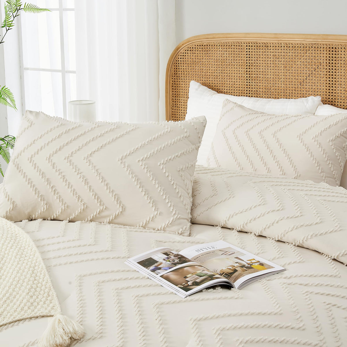 Andency Brown Comforter Set Queen Size, Boho Soft Warm Tufted Bedding Comforter Sets For Queen Size Bed, 3 Pieces Aesthetic Chevron Farmhouse Cute Bohemian Textured Bed Set