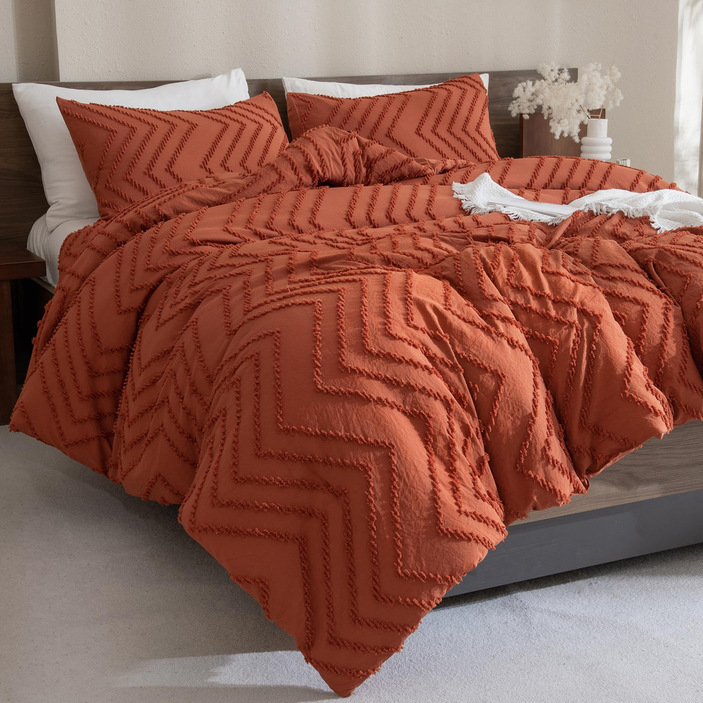 Andency Burnt Orange Full Comforter Sets, Boho Terracotta Soft Warm Bedding Comforter Sets For Full Bed, 3 Pieces Rust Chevron Tufted Aesthetic Microfiber Lightweight Comforter Set