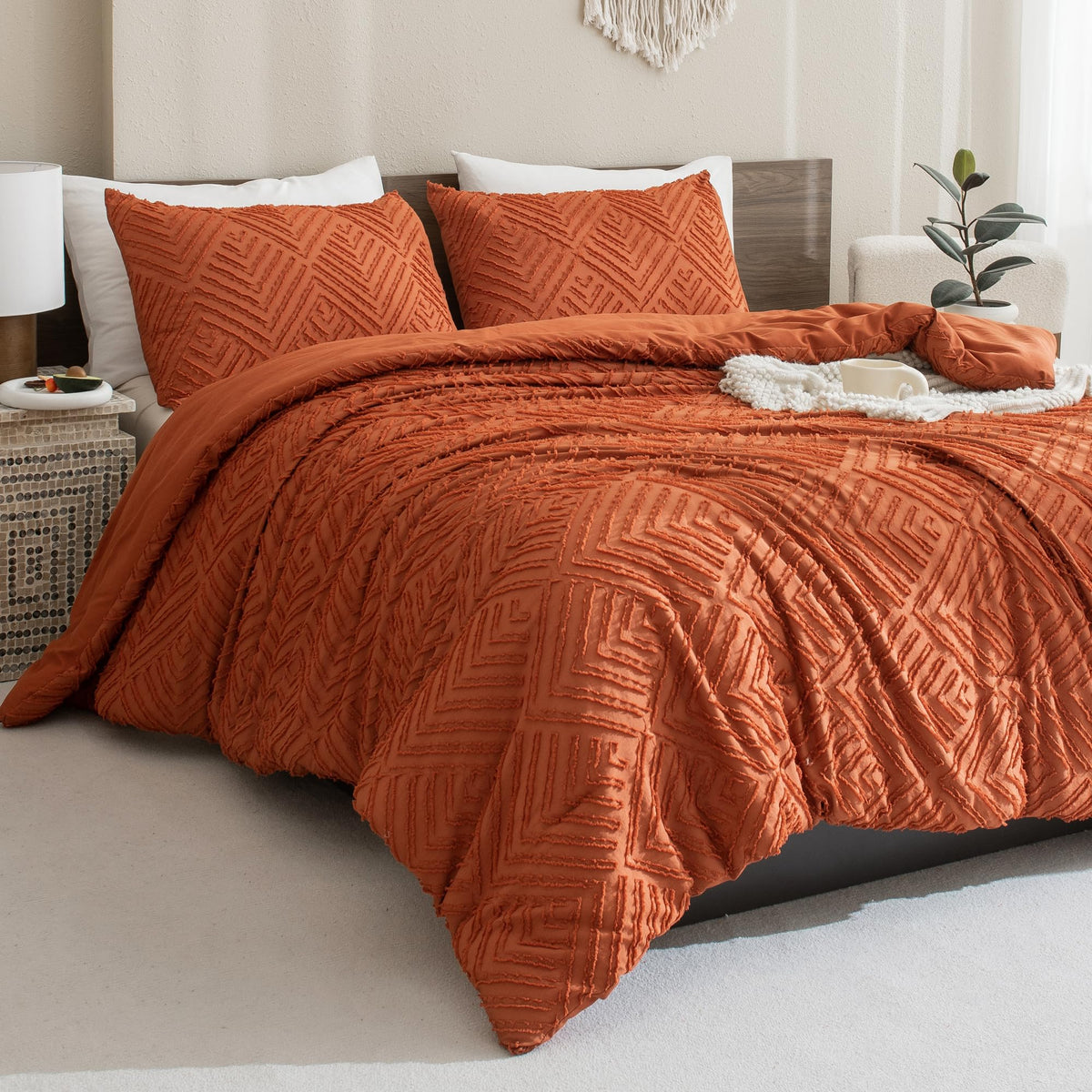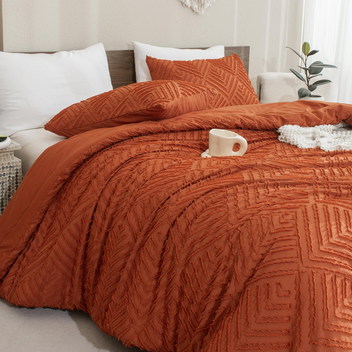 Andency Burnt Orange Queen Size Comforter, Terracotta Boho Fall Lightweight Fluffy Bedding Set & Collections For Queen Bed, 3 Pieces Rust Tufted Design Bed Set (90X90Inches, 2 Pillow Shams)