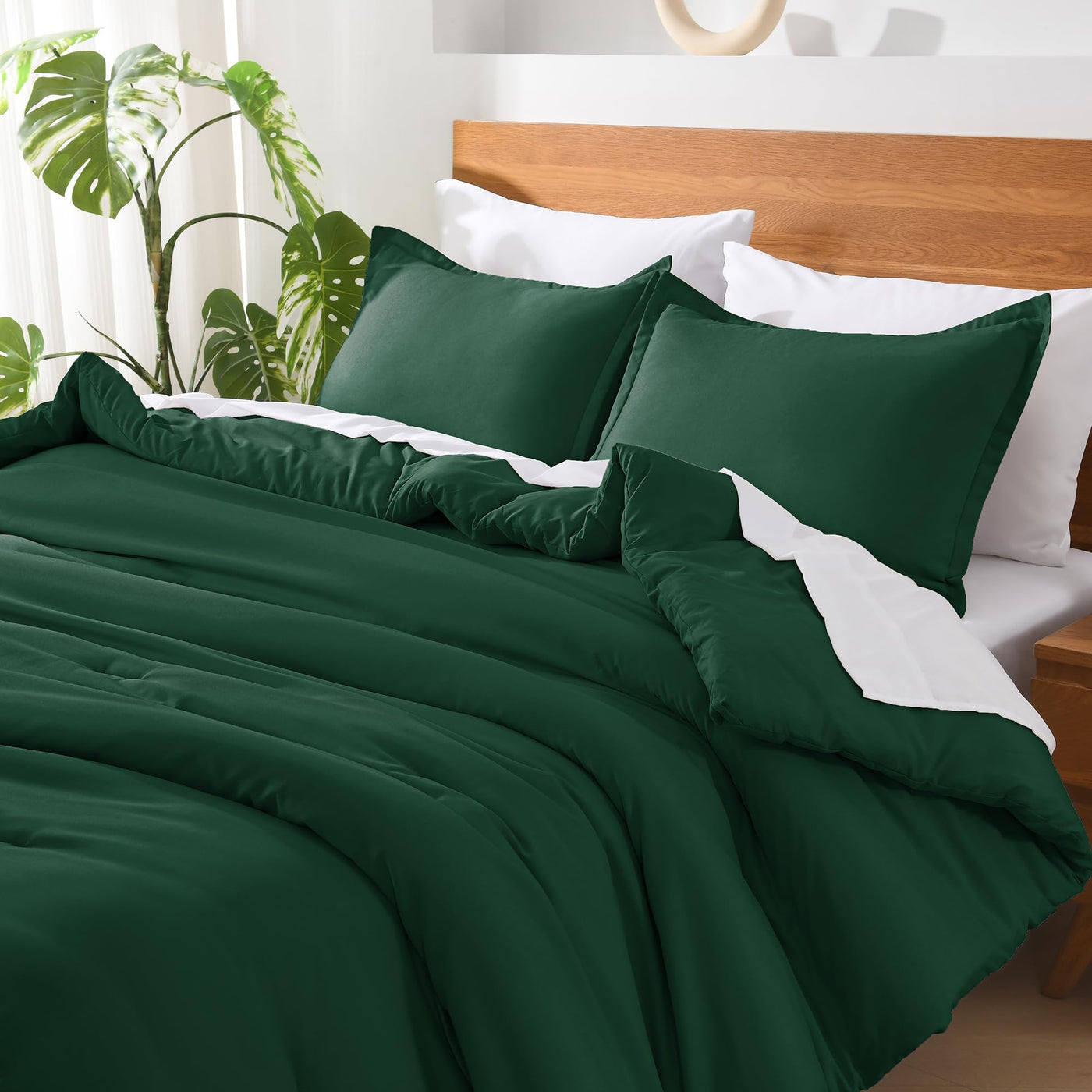 Andency California King Comforter Set Dark Emerald Green - 7 Pieces Bed In A Bag Cal King Bedding Comforter Sets, Summer Solid Soft Lightweight Comforter With Sheets, Pillowcases & Shams
