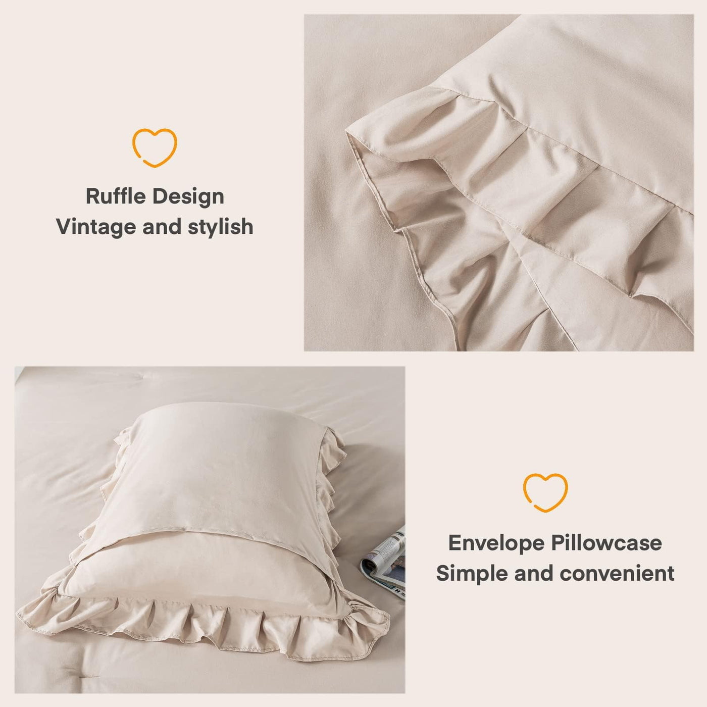 Andency Ruffle Comforter Set We are a professional manufacturer, aim to provide you comfortable and high-quality bedding sets. We have various styles of comforter sets: classic, unique, elegant style or farmhouse vintage style. You can definitely find one bedding set to meets your aesthetic taste. Why Choose Andency Ruffle Comforter Set? Ruffle: A lavender comforter creates a clean look, and the ruffle comforter is adopted a retro hem decorative pattern to show an elegant appearance and atmosphere. Soft Microfiber: Our stylish ruffled comforter is made of 100% premium quality microfiber, smooth and gentle to the touch. It will bring you a more breathable and lightweight feeling than a regular comforter. Exquisite Workmanship: Excellent stitching technology makes this shabby chic comforter durable, also a nice farmhouse room decor. Important is, the whole-piece polyfill prevents the filling from shifting, clumping. There is no concern about leakage or ripping. Great Gift: Andency lavender chic ruffle comforter set will help you build an elegant house that full of vintage farmhouse looking, the ruffle comforter sets are a good choice as a birthday gift or special holiday gift to your friends and family. Machine washable: Machine washable in the gentle cycle with cold water separately. Air dry or tumble dry on low heat. Please do not bleach. Since the comforter is vacuum packaged, to completely fluff up this comforter, we suggest you expose it to the sunlight for a few hours and tapped it for fluffy.