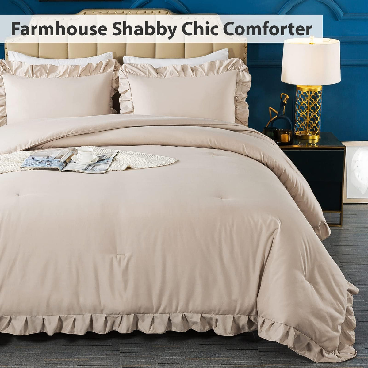 Andency California King Comforter Set Khaki (104X96Inch), 3 Pieces Cal King Ruffle Comforter, Oversized Farmhouse Shabby Chic Bed Comforter, Lighteweight And Soft Microfiber Bedding Set