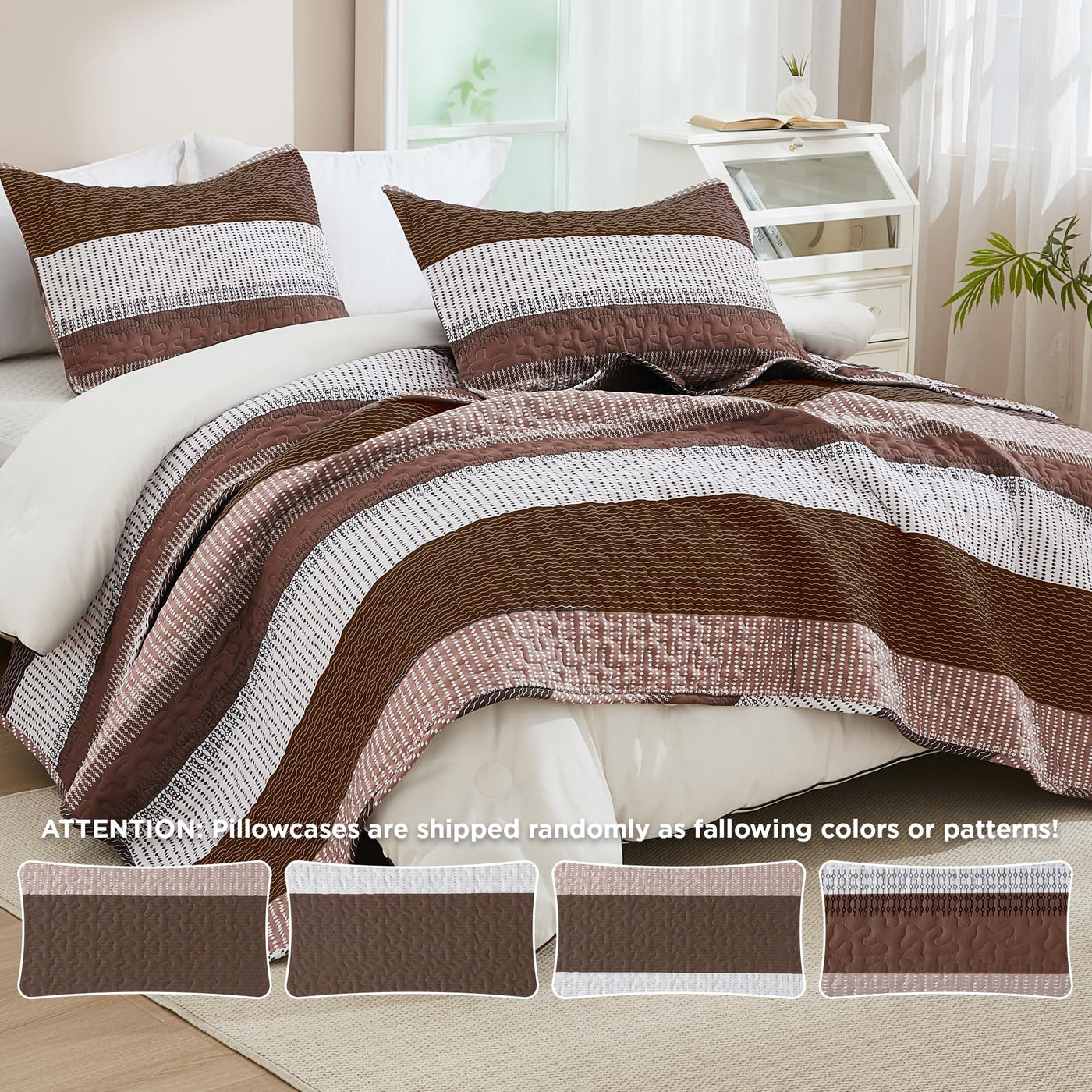 Andency California King Quilt Set - Brown Lightweight Soft Quilt Cal King - Coffee Bedspread California King Size - Bedding Coverlet For All Seasons (Includes 1 Quilt, 2 Pillow Shams)