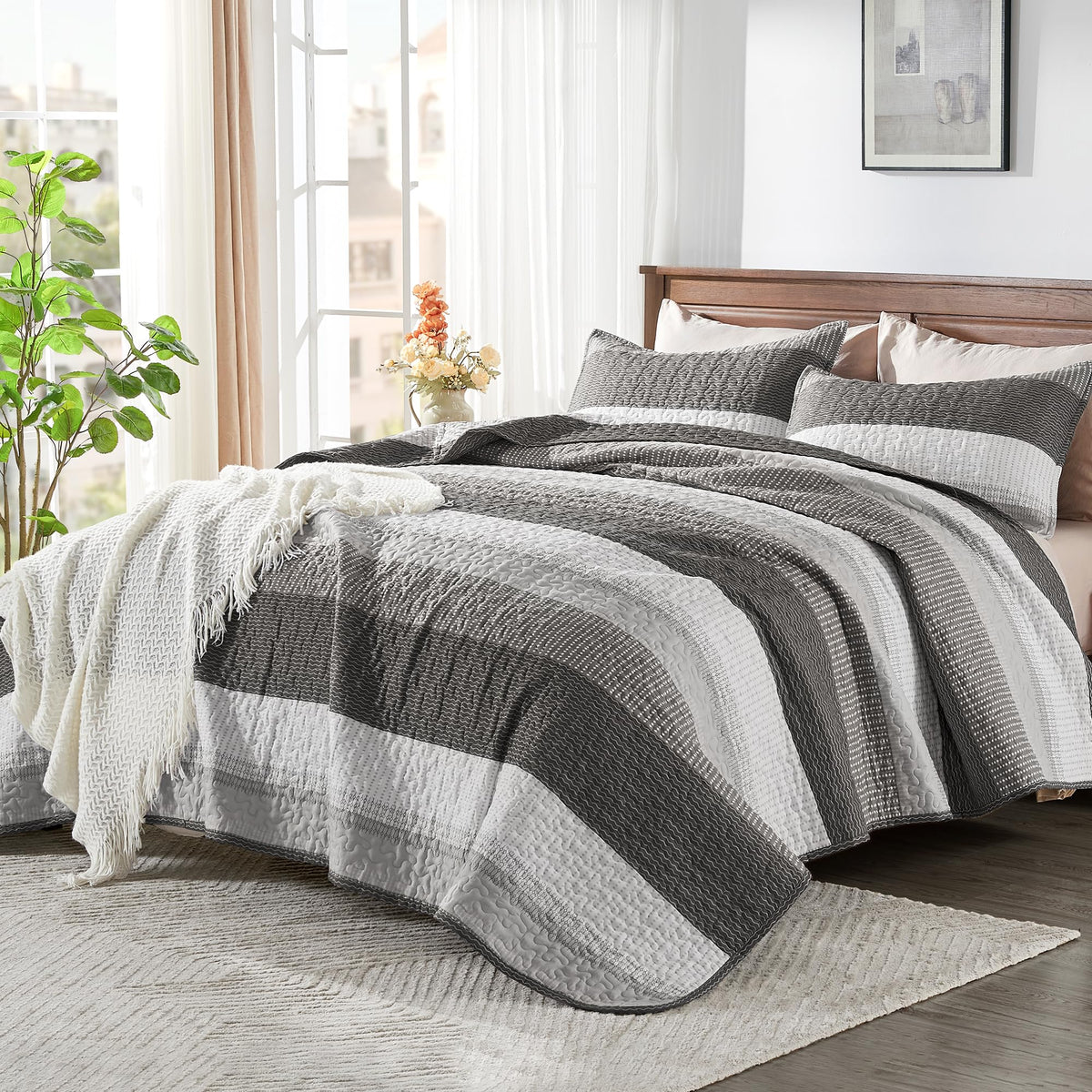 Andency California King Quilt Set - Dark Grey Lightweight Soft Quilt Cal King - Summer Bedspread California King Size - Bedding Coverlet For All Seasons (Includes 1 Quilt, 2 Pillow Shams)