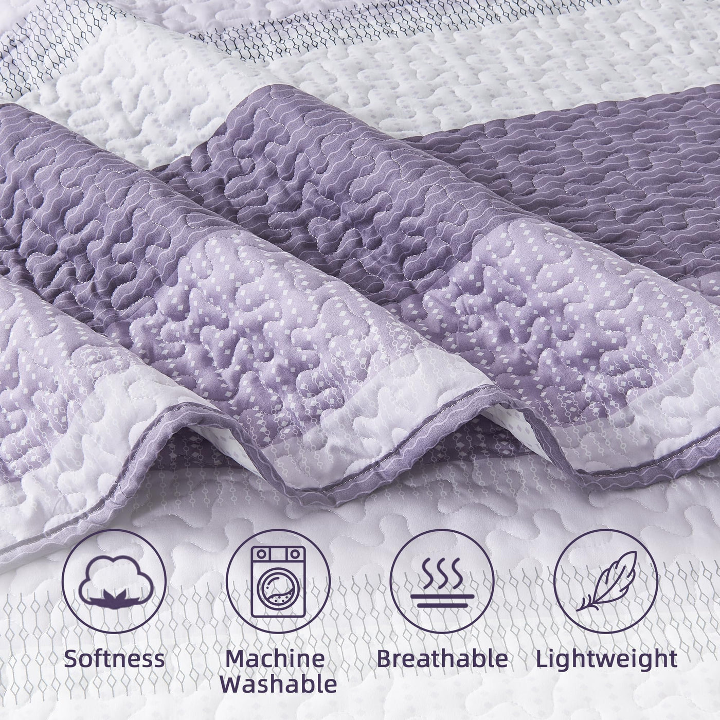 Andency California King Quilt Set - Grayish Purple Lightweight Soft Quilt Cal King - Summer Bedspread California King Size - Bedding Coverlet For All Seasons (Includes 1 Quilt, 2 Pillow Shams)