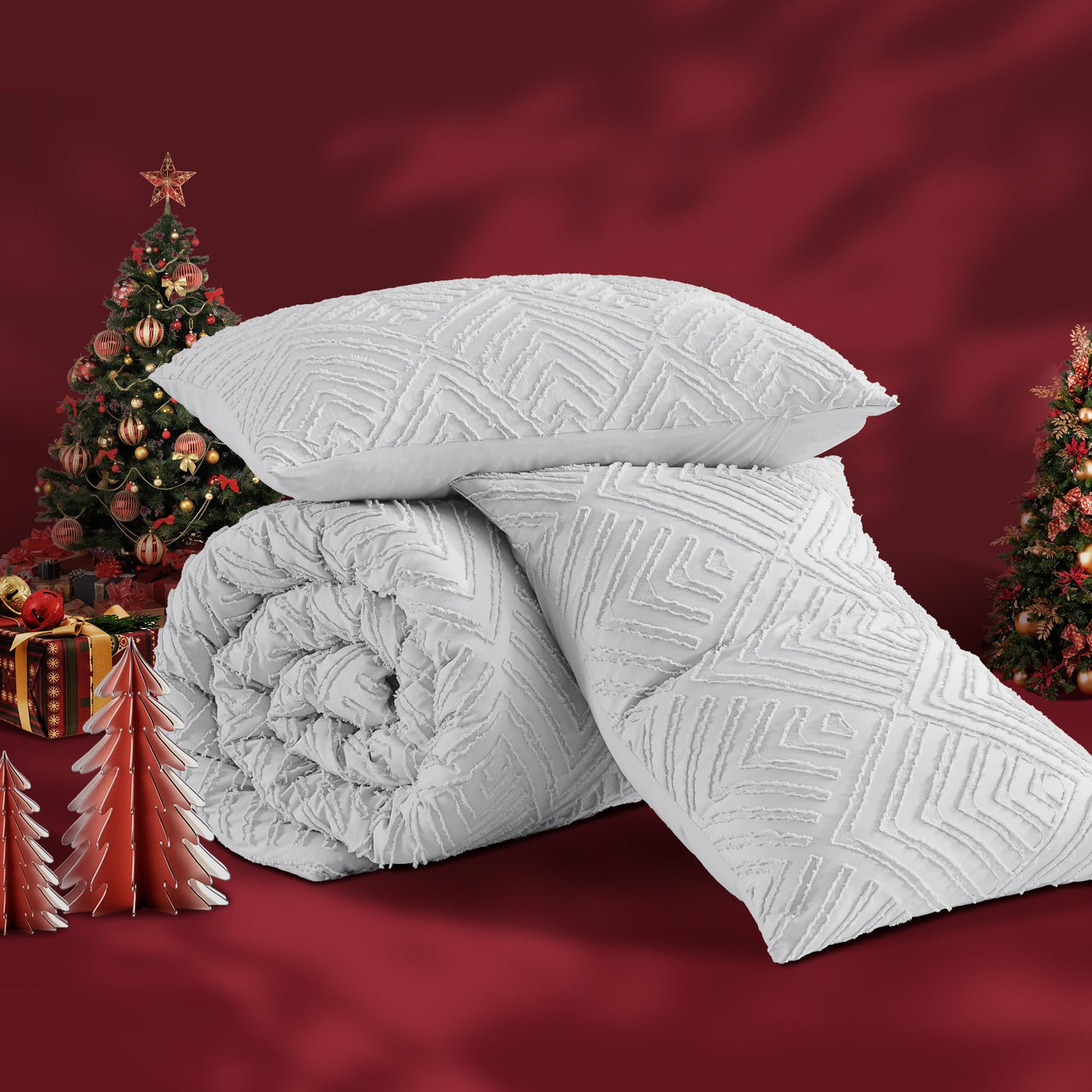 Andency Light Grey King Size Comforter Set, 3 Pieces Boho Bedding Set & Collections, Farmhouse Tufted Fluffy Bedding Comforter Sets For King Bed (1 Comforter 104X90In, 2 Pillowcases)
