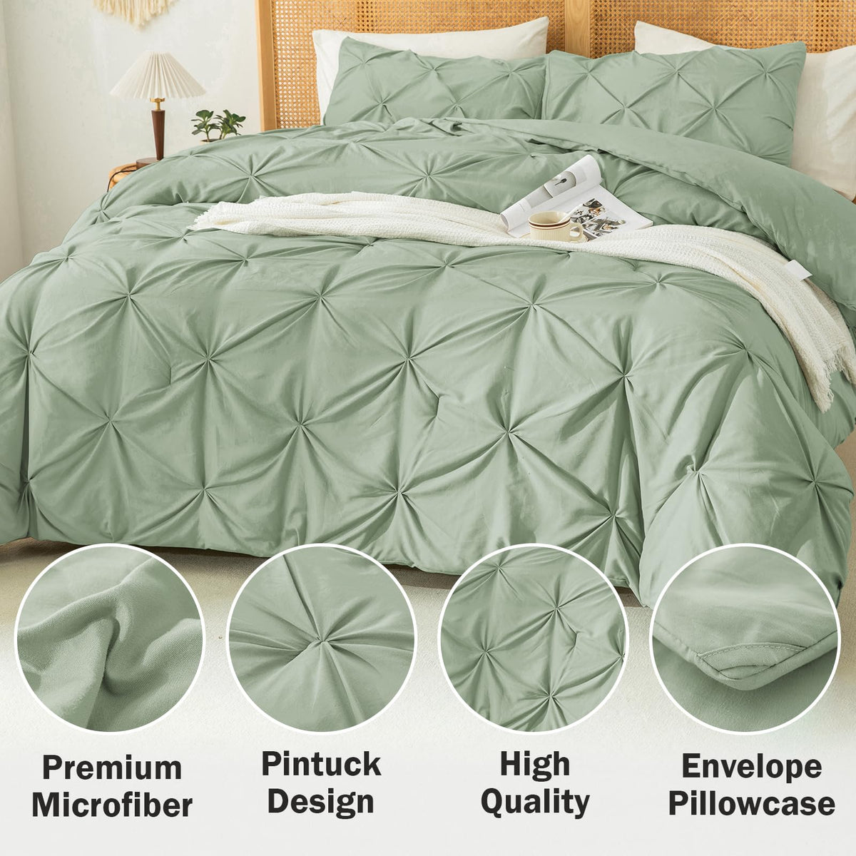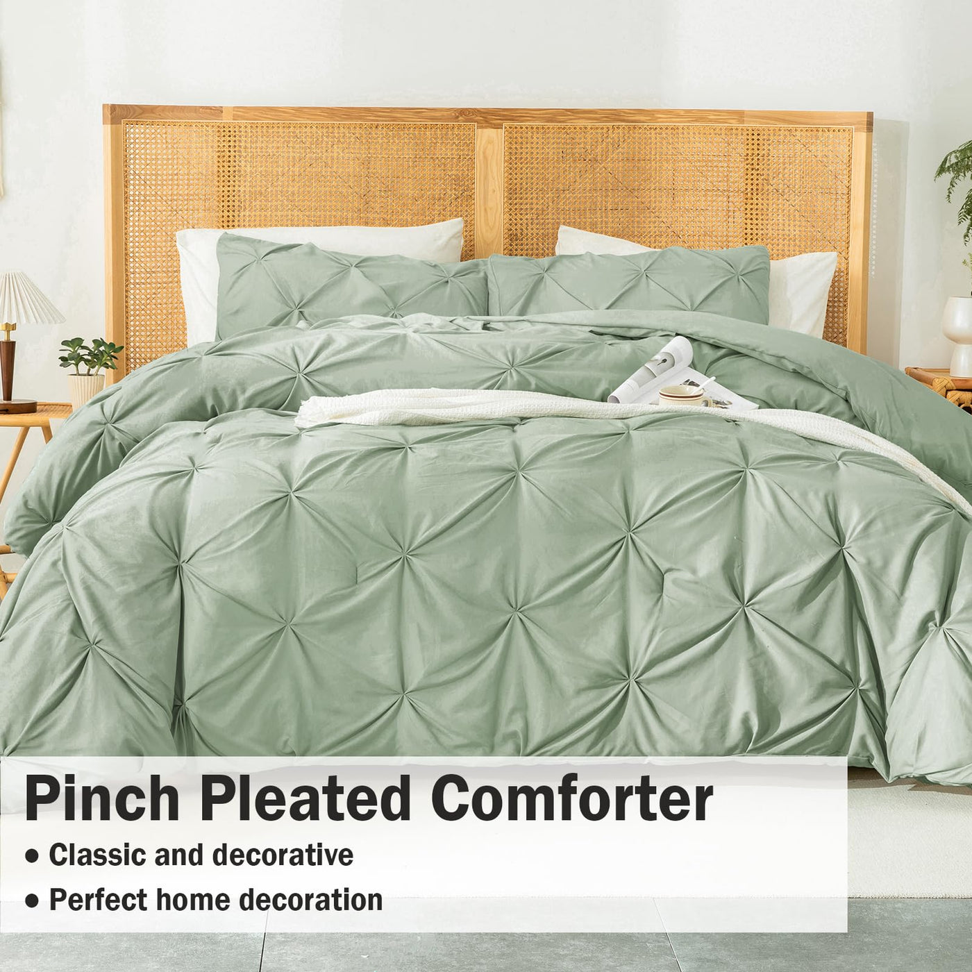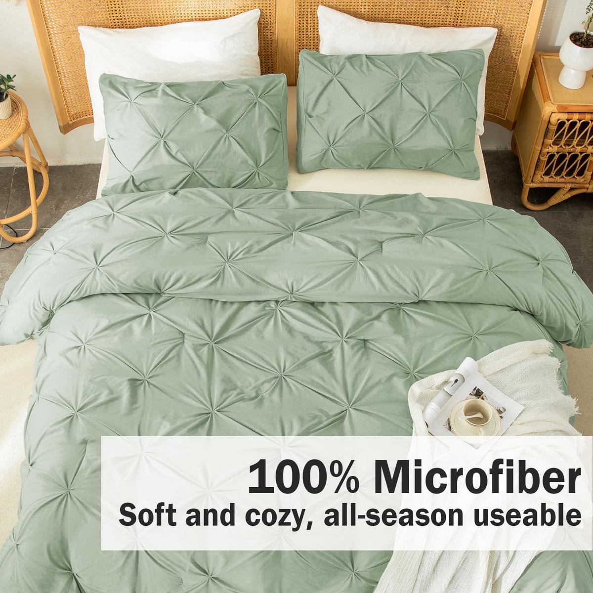 Andency Sage Green Comforter Twin(66X90Inch), 2 Pieces(1 Pintuck Comforter, 1 Pillowcase) Microfiber Pinch Pleat Comforter Set Twin Size, Lightweight And Soft Bedding Comforter Set