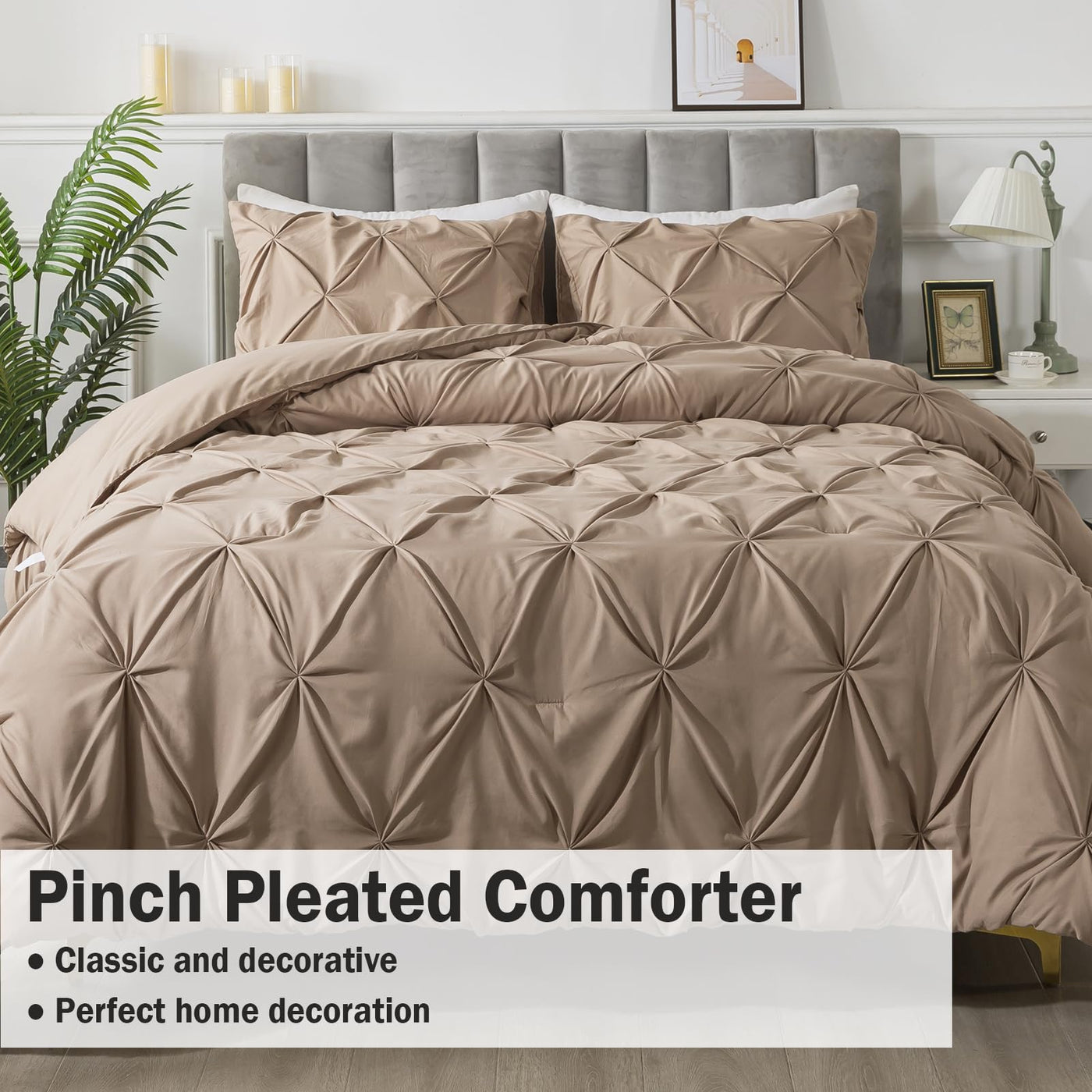 Andency Taupe Comforter Twin(66X90Inch), 2 Pieces(1 Pintuck Comforter, 1 Pillowcase) Microfiber Pinch Pleat Comforter Set Twin Size, Lightweight And Soft Bedding Comforter Set