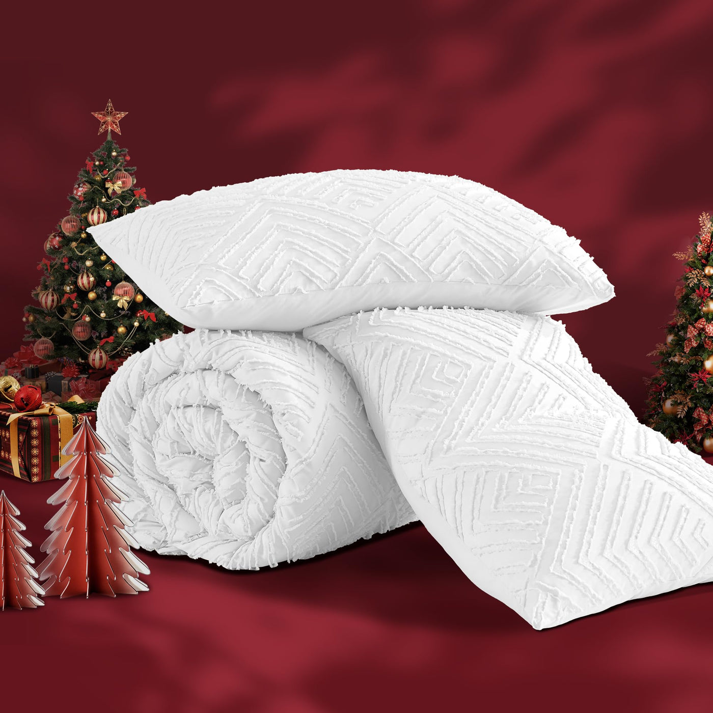 Andency White Comforter King Size, 3 Pieces Boho Bedding Set & Collections, Farmhouse Tufted Fluffy Bedding Comforter Sets For King Bed (1 Comforter 104X90In, 2 Pillowcases)