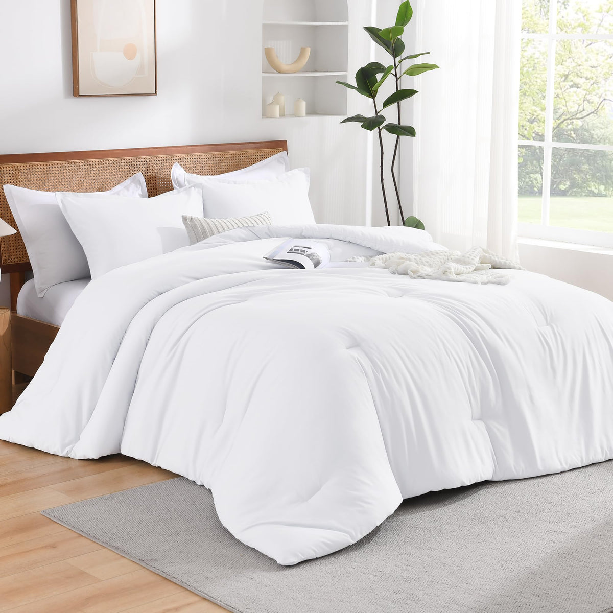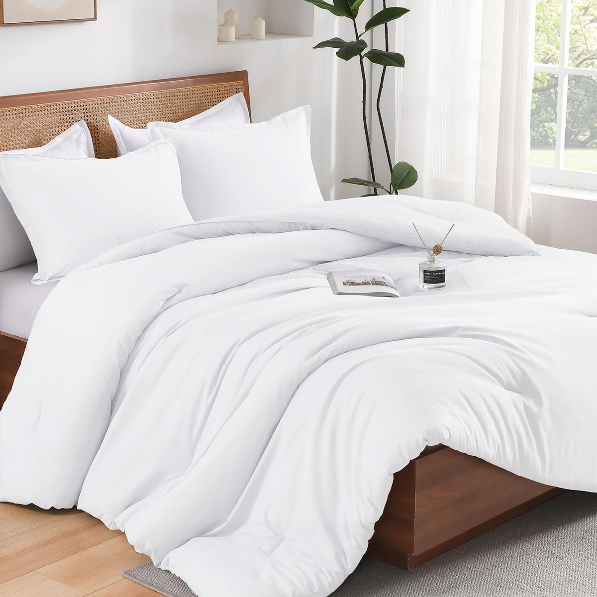 Andency White Full Size Comforter Set, 3 Pieces Boho Solid Reversible Bed Comforter Set, All Season Lightweight Soft Microfiber Bedding Comforter Set For Girls, Women, Adults