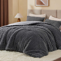 Bedelite Fluffy King Size Comforter Set - Grey Fleece Soft Comforter For King Size Bed, Luxury Warm Bedding Set For Winter, Fuzz