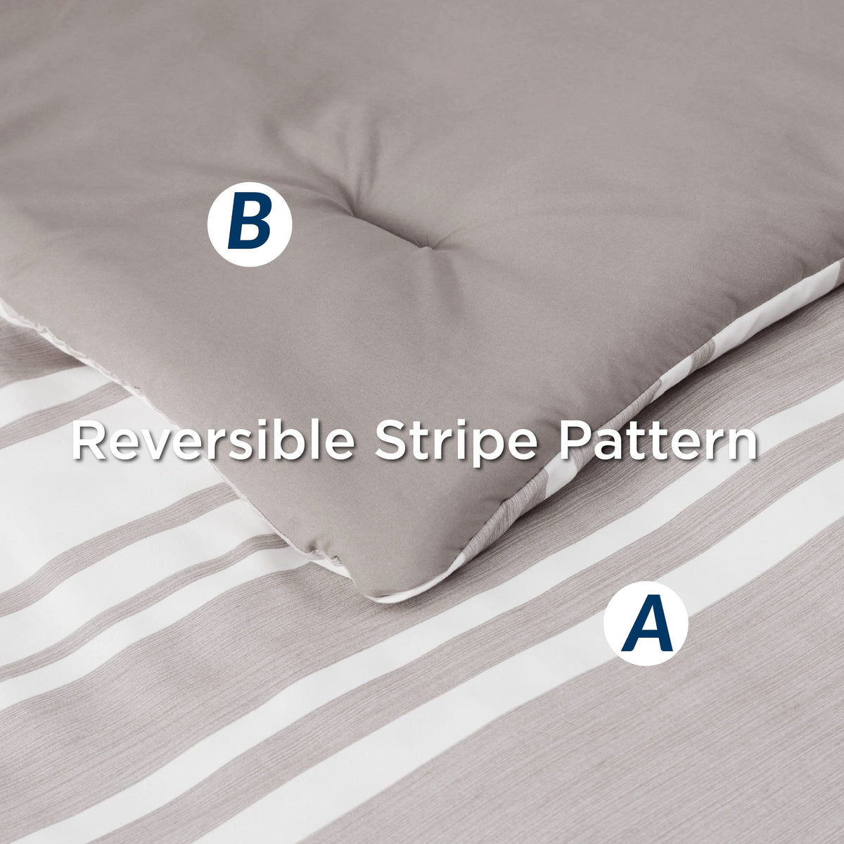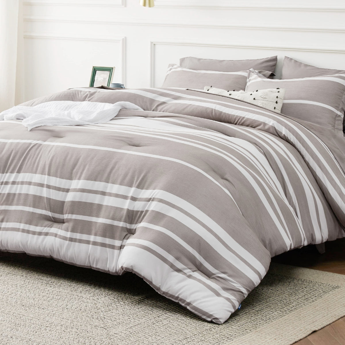 Bedsure Bed In A Bag Twin Size 5 Pieces, Warm Taupe White Striped Bedding Comforter Sets All Season Bed Set With 1 Pillow Sham, Flat Sheet, Fitted Sheet And 1 Pillowcase