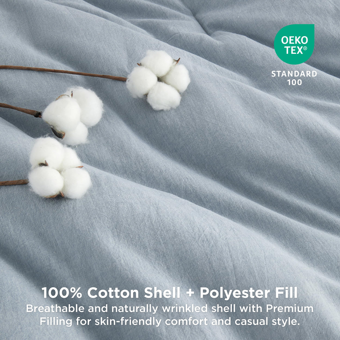 Extra Cozy: The 100% cotton outer cover on this comforter set provides exceptional breathability and moisture-wicking properties, ensuring maximum coziness night after night. | Ultra Soft: This comforter is prewashed in manufacturing, and filled with extra-fine polyester microfiber to achieve an exquisite softness that's gentle on the skin, delivering all-year-round comfort. | Natural Wrinkle: This comforter features a stylish, natural wrinkle that can effortlessly complement any interior space. | Safe Material: This fluffy comforter is Standard 100 by OEKO-TEX certified for meeting the highest testing criteria for harmful chemicals and has been found harmless for humans. | Easy Care: The Bedsure comforter set is machine-washable and easy to maintain. Simply machine wash in cold water on gentle cycles and tumble dry low for a like-new restoration.