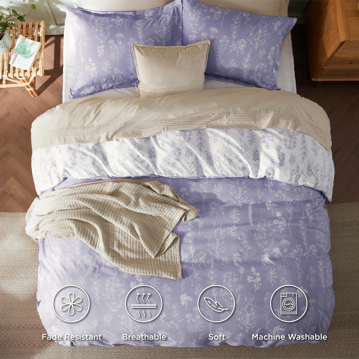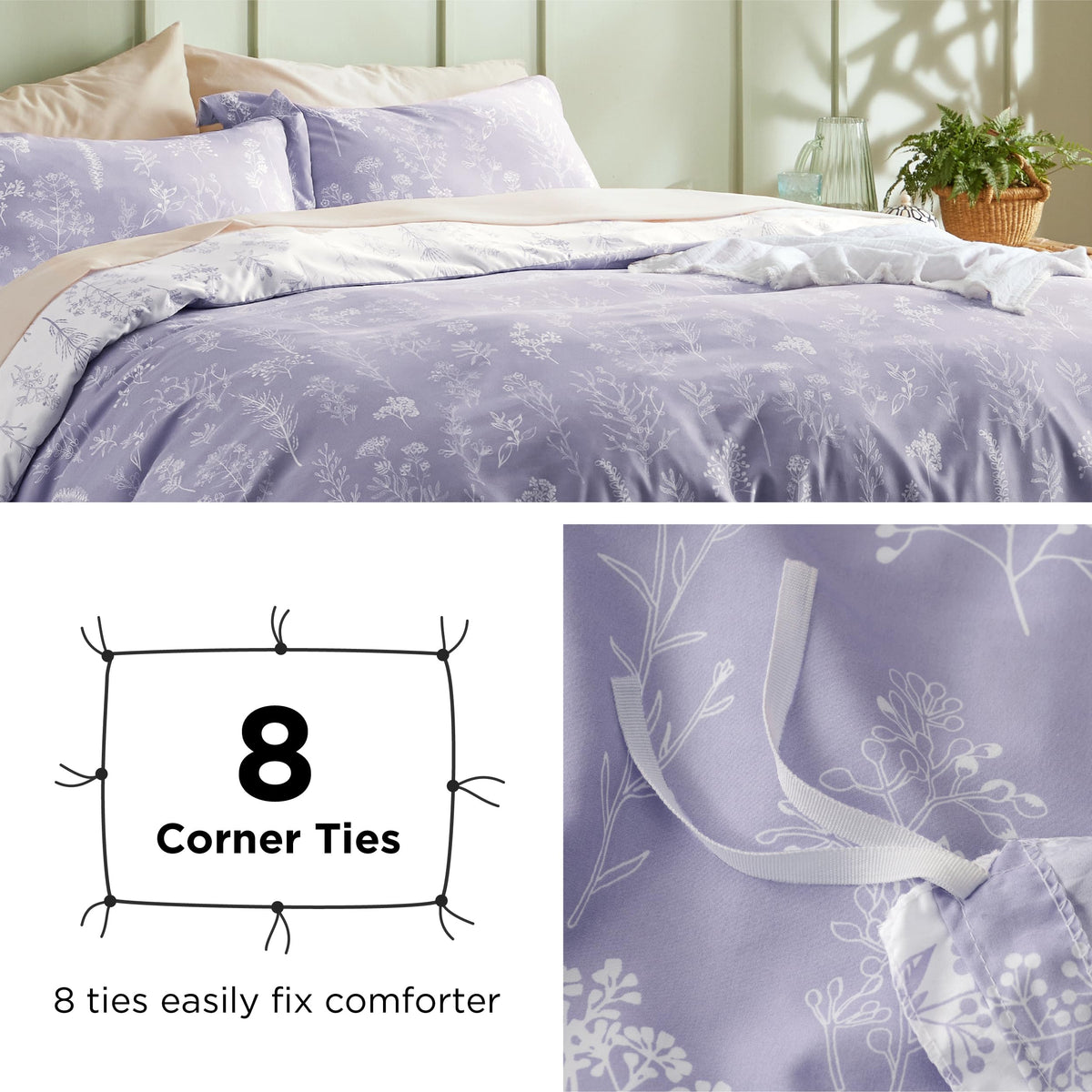 Bedsure Duvet Cover Queen Size - Reversible Lilac Purple Queen Duvet Cover Set With Zipper Closure, 3 Pieces Cute Floral Patterned Bedding Set With 8 Corner Ties And 2 Pillow Shams