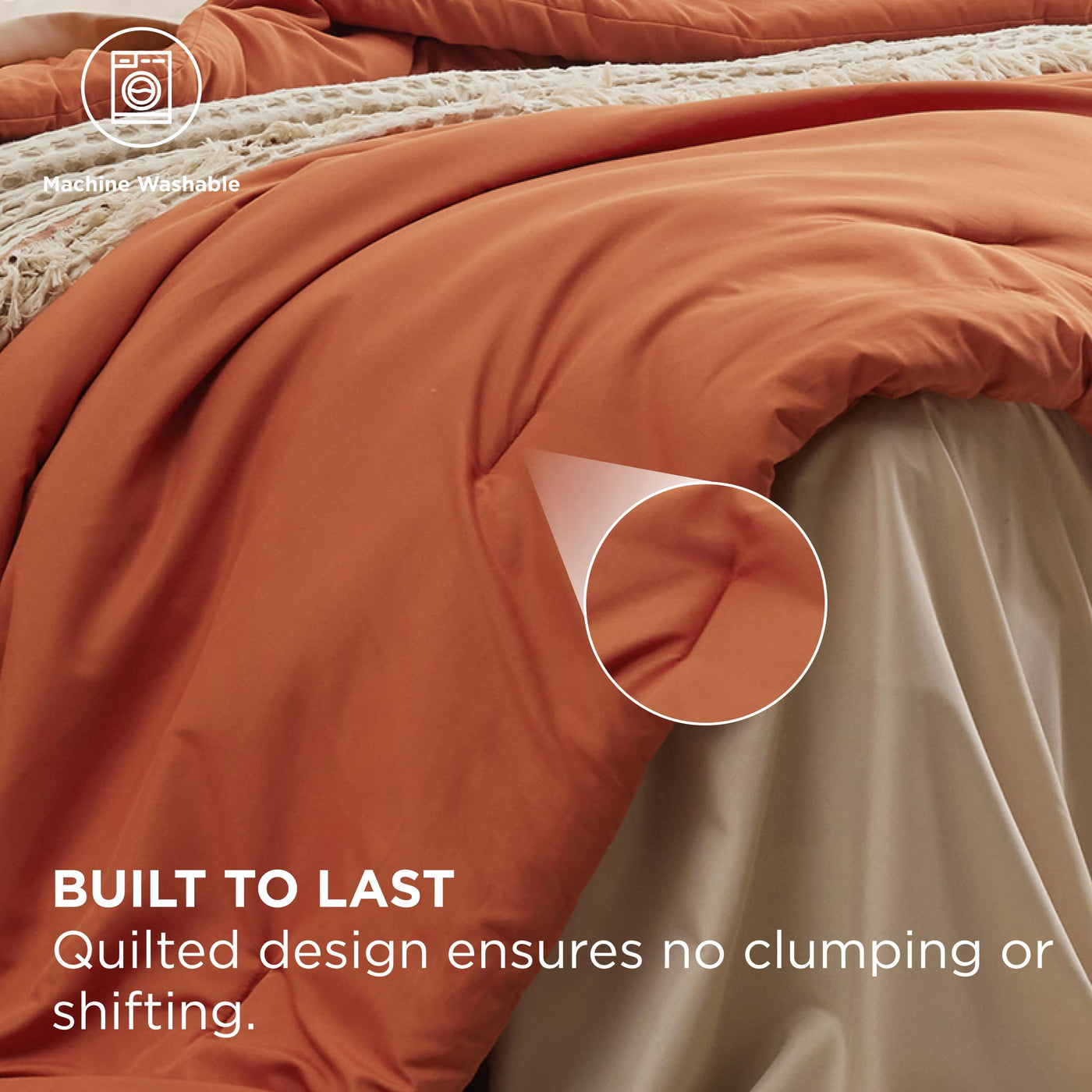 Bedsure Full Size Comforter Set - 7 Pieces Burnt Orange Full Bedding Set For All Seasons, Boho Contrasting Design Bed In A Bag With Comforter, Sheets, Pillowcases & Shams