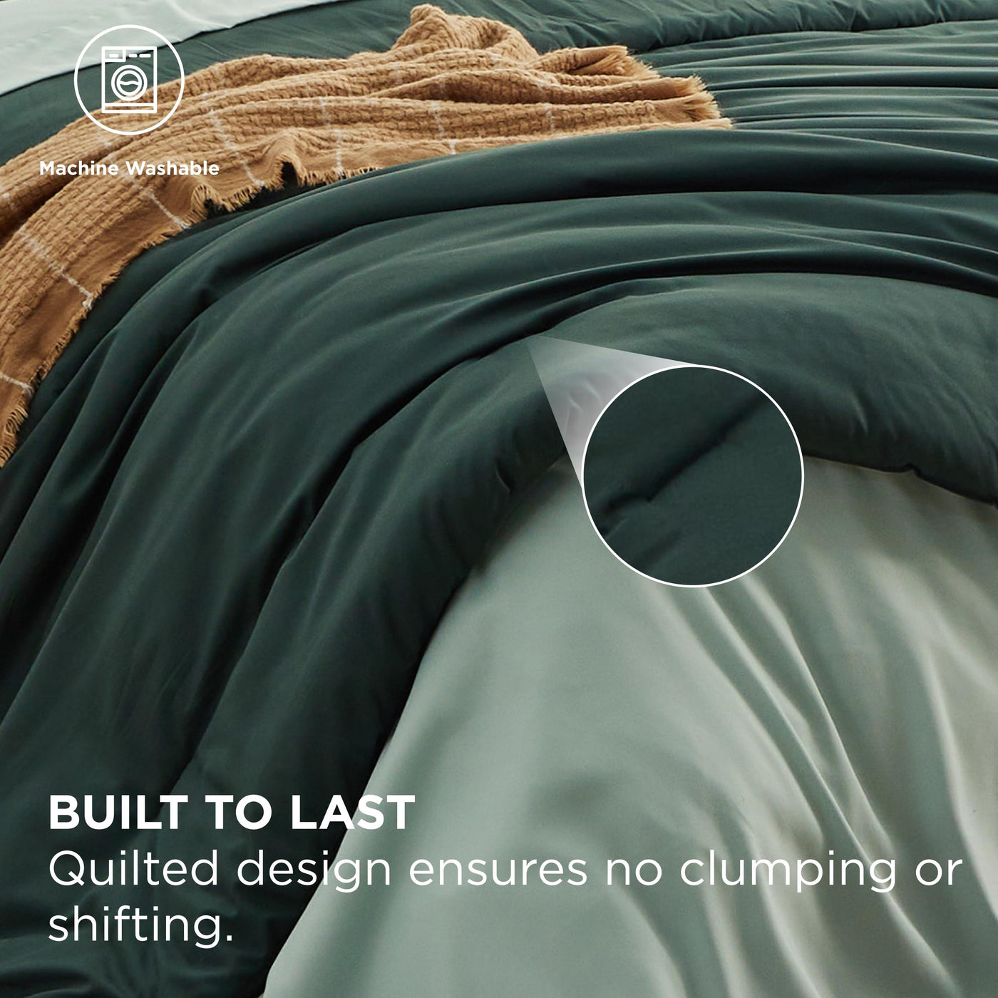 Fluffy and Comfortable: This twin comforter set is crafted from ultra-fine microfiber and filled with cloud-like fibers, providing an ideal blend of weight, softness, and warmth for year-round comfort. | Simple Elegance: This bed-in-a-bag set showcases a refined contrasting color design. The interplay of colors between the pillow shams and bed sheets adds depth, effortlessly enhancing any interior decor style. | Certified for Safety: This bedding set is Standard 100 by OEKO-TEX certified for meeting the highest testing criteria for harmful chemicals and has been found harmless for humans. | Durability: Crafted from polyester microfiber, this bedding set can withstand repeated washing without tearing or fading. The included comforter has a quilted design that stops the filling from moving, ensuring it stays in good shape for years. | Easy Care: This inclusive king size bedding set comes with 1 Comforter (102' x 90'), 2 Pillowcases (20' x 40'), 2 Pillow Shams (20' x 36' + 2'), 1 Fitted Sheet (78' x 80' + 14'), 1 Flat Sheet (108' x 102'). Machine wash it in cold water on a gentle cycle, and tumble dry low for a like-new restoration.