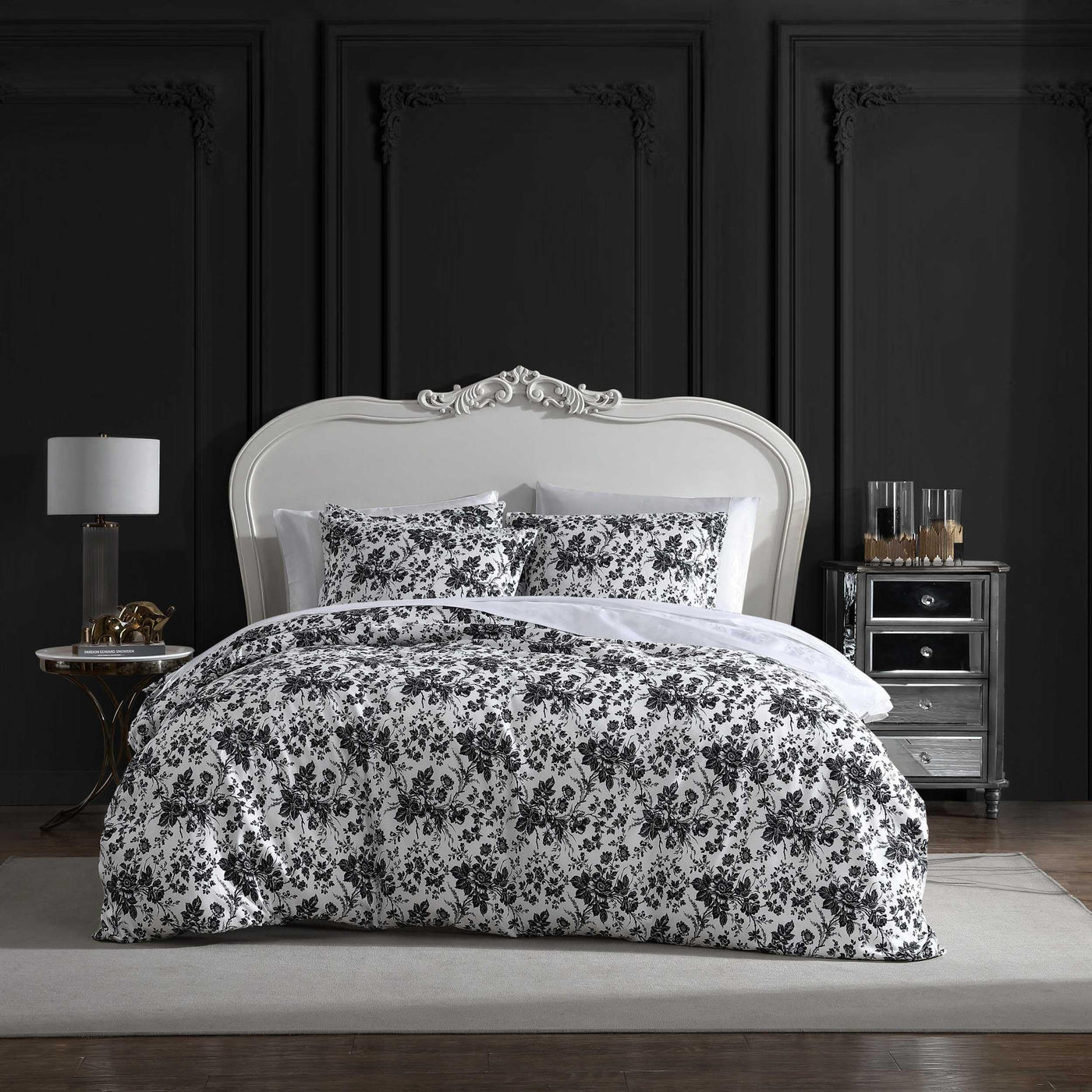 Betsey Johnson - King Duvet Cover, Soft Bedding Set With Matching Shams, Floral Home Decor (Betseys Toile Black, King)