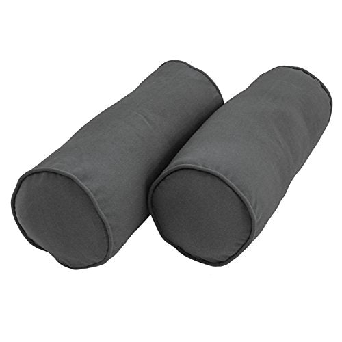 Blazing Needles Corded Twill Bolster Pillows (Set of 2), 2 Count (Pack of 1), Steel Grey
