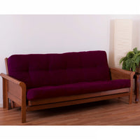 Add a splash of vibrant color and cushy comfort to your indoor furnishings with this 5-inch full-size futon. This futon features a two-layer foam core/cotton batting mattress design for maximum support and comfort and is available in a wide variety of colors of premium twill fabric. Available colors: Aqua blue, berry, black, burgundy, chocolate, emerald, forest green, grape, hot pink, indigo, mojito lime, natural, navy, red, royal blue, ruby red, sage, spice, steel grey, sunset, tangerine dream, toffee.
