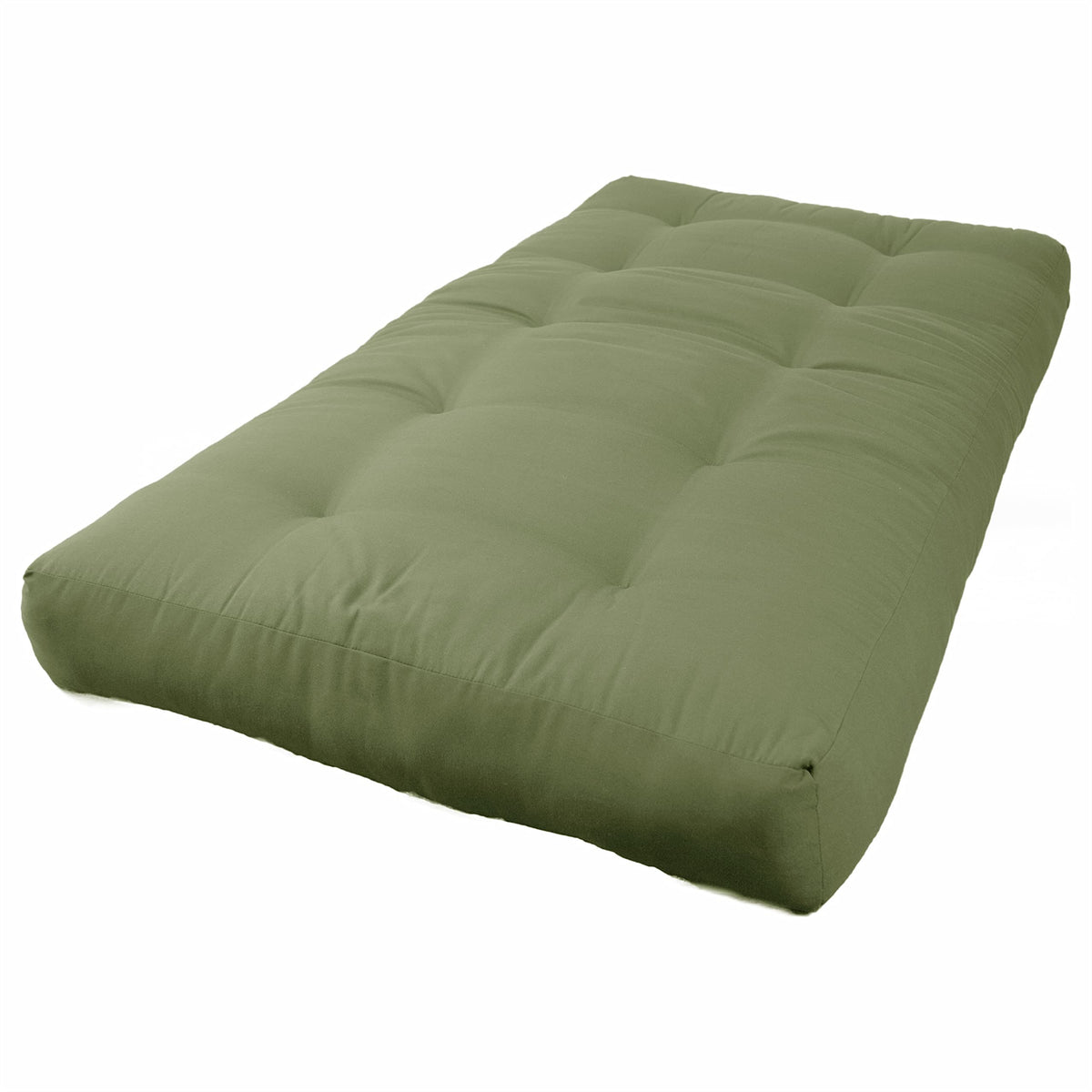 Add a splash of vibrant color and cushy comfort to your indoor furnishings with this 8-inch twin-size futon. This futon features a three-layer foam core/cotton batting mattress design for maximum support and comfort and is available in a wide variety of colors of premium twill fabric. Available colors: Aqua blue, berry, black, burgundy, chocolate, emerald, forest green, grape, hot pink, indigo, mojito lime, natural, navy, red, royal blue, ruby red, sage, spice, steel grey, sunset, tangerine dream, toffee.