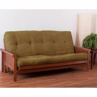 Add a splash of vibrant color and cushy comfort to your indoor furnishings with this 7-inch full-size futon. This futon features a two-layer foam core/cotton batting mattress design for maximum support and comfort and is available in a wide variety of colors of premium microsuede fabric. Available colors: Aqua blue, berry, black, camel, cardinal red, chocolate, emerald, hunter green, indigo, java, lemon, mojito lime, red wine, saddle brown, sage green, spice, steel grey, tangerine dream.