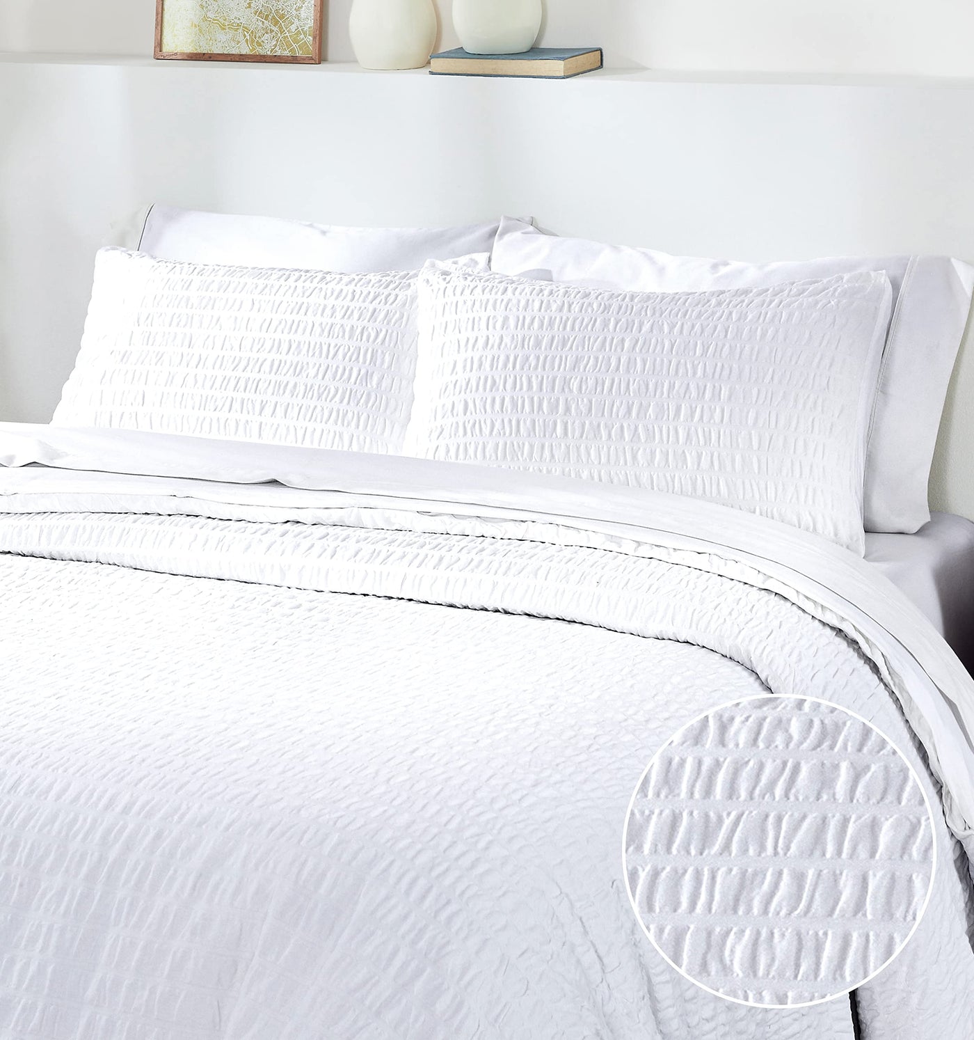 California Design Den Oversized King Duvet Cover Set, 100% Cotton 3 Pc Cover & Sham Set, Soft Textured White Duvet Cover 120' X