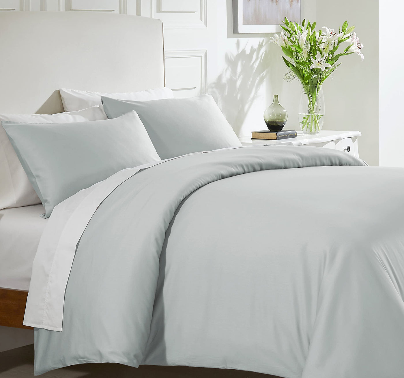 California Design Den Queen Cotton Duvet Cover - 400 Thread Count Sateen Weave 3 Pc Bedding Set, Light Grey 100% Cotton Quilt Co