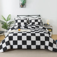 Caressma Queen Comforter Set Black White Plaid (90X90 Inch), 3 Pieces Buffalo Comforter Bedding Set, Stylish Geometric Checkered