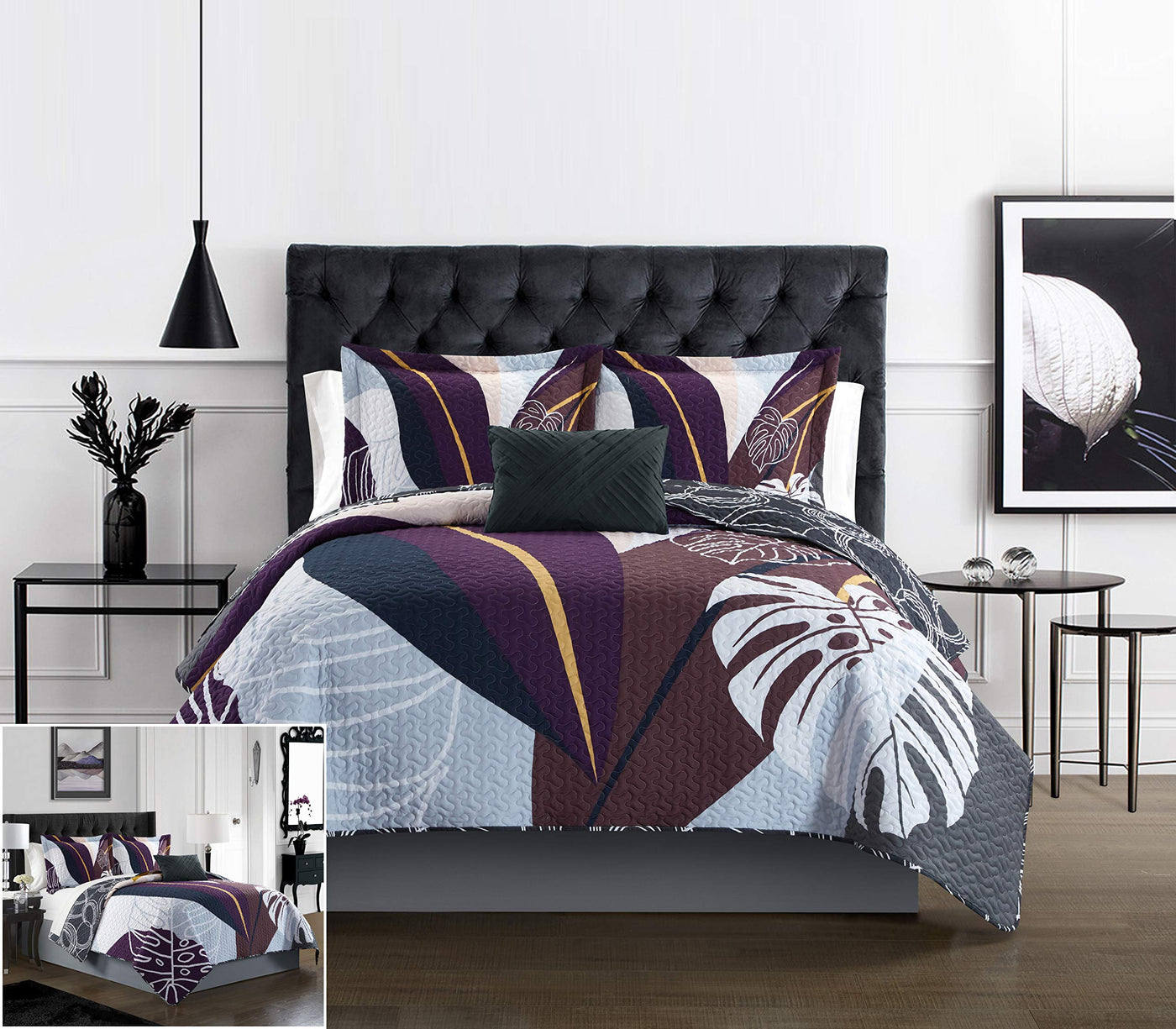 Refresh Your Bedroom With The Stunning Aello Quilt Set From Chic Home. This On Trend Quilt Features An Abstract Large Scale Floral Print On The Face And A Contemporary Design On The Reverse. Design Coordinated Pillow Shams And A Deco Pillow Complete The Look. Every Aello Quilt Is Made With Luxuriously Soft Microfiber Fabric For A Great Night'S Sleep With Less Tossing And Turning. Specifications: Size: King Color Scheme: Multi-Color Piece Count: 4 Set Includes: 1Pc Reversible Quilt (106 X 92 ) 2Pc Pillow Shams (20 X 36 + 2 ) 1Pc Decorative Pillow (12 X 18 ) Materials: Luxuriously Brushed Microfiber Fabric, Hypoallergenic Synthetic Down Alternative Filling Fabric And Design: Silky Soft Brushed Microfiber Cotton-Feel Material Fashion Forward Large Scale Abstract Floral Print With A Contemporary Design On The Reverse Features: Luxuriously Soft Feel For A Great Night Sleep With Less Tossing And Turning Hypoallergenic Alternative Down Filling Is Perfect For Those Allergic To Traditional Down Materials Just The Right Fill To Keep You Comfortable When The Weather Gets Warmer Built To Last With Premium Fabrics And Expert Stitching Care Instructions Dry Clean Preferred. Machine Washable, Use Front Loader Machine (Or Top Loader Without Agitator) To Avoid Tearing, Use Cold Water On Gentle Cycle, Tumble Dry Low Add 2 Tennis Balls To The Dryer To Speed Up Drying And Add Fluffiness The Digital Images We Display Have The Most Accurate Color Possible. However, Due To Differences In Computer Monitors, We Cannot Be Responsible For Variations In Color Between The Actual Product And Your Screen.