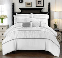 Turn Any Bedroom Into A Luxurious Experience With The Chic Home Cheryl White 10 Piece Pinch Pleat King Size Comforter Set Specifications: Size: King Color: White Piece Count: 10 Set Includes: 1Pc Comforter (104 X 90 ) 4Pc Sheet Set (1 Fitted Sheet, 1 Flat Sheet, 2 Sham Sized Pillowcases) 2Pc Shams (20 X 36 ) 1Pc Decorative Pillow (18 X 18 ) 2Pc Breakfast Pillow (12 X 18 ) Shipping Dimensions (Approx.): L 19.5' X W 19.5' X H 11.5' Materials: Luxuriously Brushed Microfiber Fabric, Synthetic Down Alternative Filling, Fabric And Design: Silky Soft Brushed Microfiber Material Fashion Forward Pleated Ruffle Ruched Design Elegant And Sophisticated Look With Color And Design Coordinated Decorative Pillows And Sheets Features: Luxuriously Soft Feel For A Great Night Sleep With Less Tossing And Turning Down Alternative Filling Is Perfect For Those Allergic To Traditional Down Just The Right Fill To Keep You Warm In The Winter And Cool In The Summer Built To Last With Premium Fabrics And Expert Stitching Care Instructions Dry Clean Preferred. Machine Washable, Use Front Loader Machine (Or Top Loader Without Agitator) To Avoid Tearing, Use Cold Water On Gentle Cycle, Tumble Dry Low * Add 2 Tennis Balls To The Dryer To Speed Up Drying And Add Fluffiness Ready To Transform Your Bedroom? Just Scroll Up And Click Add To Cart ! Quantities Are Limited So Hurry.