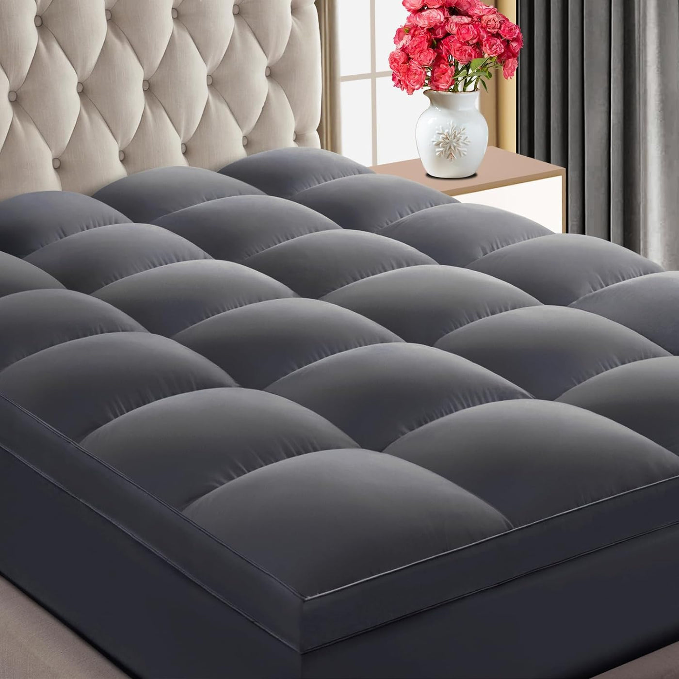 ?Extra Thick & Ultra Soft?: 60% Thicker Than Normal Mattress Topper. Overfilled With Ultra-Plush Down Alternative Fill, This Mattress Topper Offers The Time-Tested Comfort And Provides Support For Your Shoulders And Hips. Excellent Way To Restore The Support Of An Old Or A Too-Firm Foam Mattress Or Simply Improve The Softness And Comfort Of Any Newer Mattress. Rejuvenate Your Old Mattress Regardless Of Whether Your Current Mattress Is New Or Old, Nothing Is Worse Than Sleeping On A Bed That Doesn'T Provide The Support And Comfort That You Need To Get A Good Night'S Rest. Giving Your Sleep Space New Life With Chokit Mattress Topper Is The Perfect Upgrade No Matter If You Have An Old Mattress That Is No Longer Supportive Or You Just Want To Add An Extra Layer Of Cushy Support. Luxurious Comfort After The Trial Of Various Filling Materials, We Finally Chose This Ultra-Plush Snow Down Alternative Filling. It'S Softer And Puffier Than Other Fillings. It Brings Enough Thickness To Your Mattress That Can Highly Increases Comfort And Softness And Relieve Effectively The Back Pain Caused By A Hard Mattress. Sizes Available Twin: 39'X75'+21' Twin Xl:39'X80'+21' Full:54'X75'+21' Queen:60'X80'+21' King: 78'X80'+21' California King:72'X84'+21' Care Instruction 1.Since It'S Vacuum Packed, Air It Out For At Least 1 Hour Or Wash And Dry To Make It Fluffy. 2.Should Be Dried On The Low Settings And Not Ironed To Maintain The Fluffiness Of The Plush Fillings. 3.Should Be Stored In A Bag In Dry Cupboard When Not In Use.