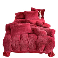 Chovy Faux Fur Plush Dark Red Comforter Sets Queen - Ultra Soft Shaggy Flannel Velvet Fluffy Fuzzy 3Pc Bedding Set (Comforter X