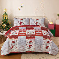 Christmas Quilt Set King Size Red Printed Quilt Santa Claus Snowman Bedspread Soft Microfiber Coverlet With 2 Pillow Shams For A