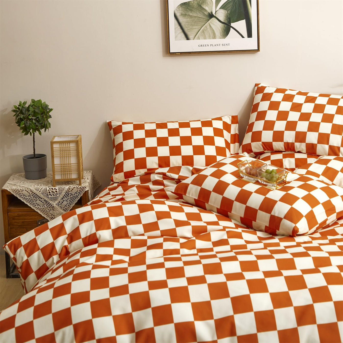 Clothknow Burnt Orange Gird Comforter Set King Rust Bedding Set Geometric Bedding Comforter Caramel Bedding Buffalo Check Comforter Soft Lightweight Bedding 3Pcs Plaid Comforter Sets