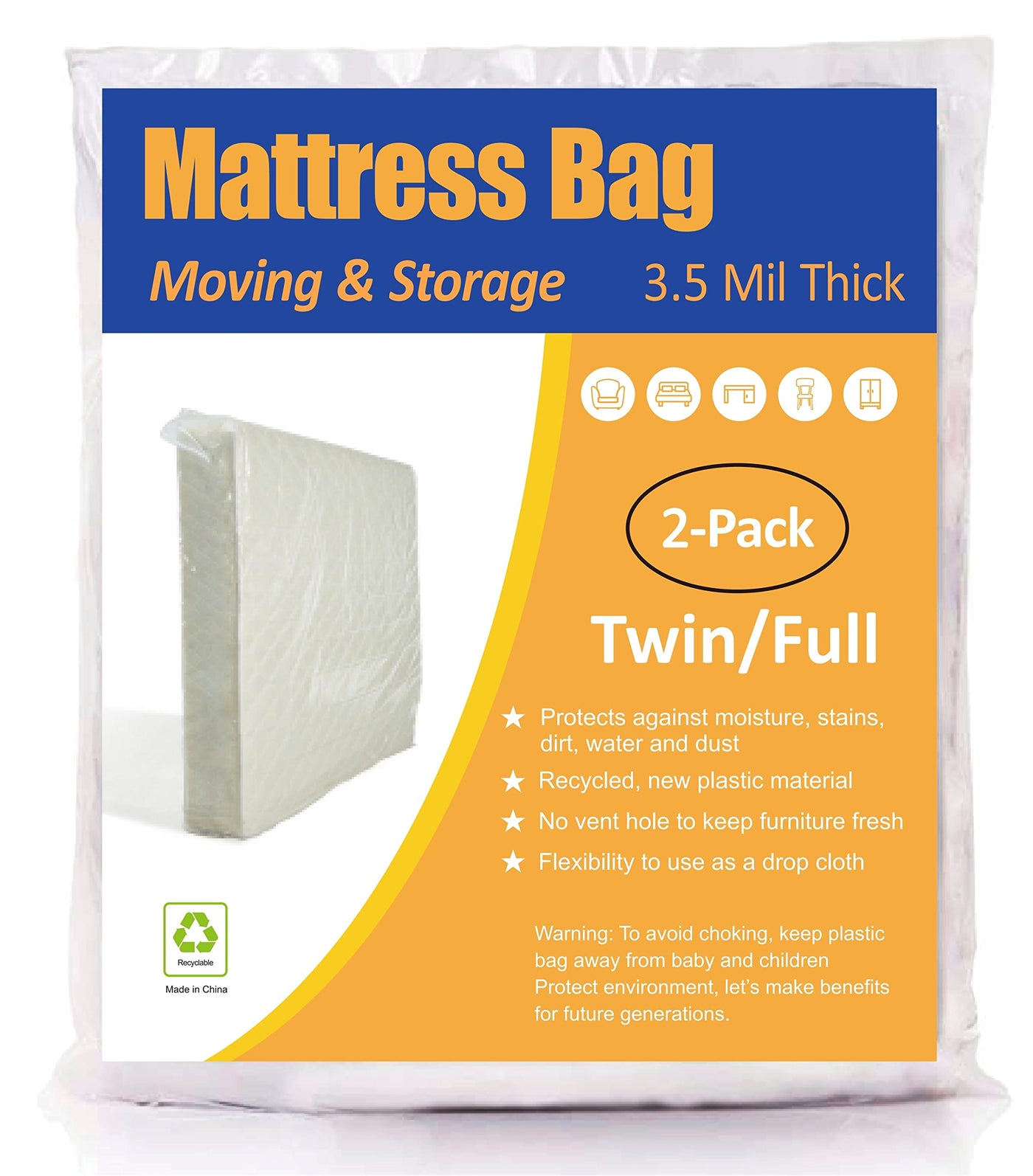 Twinfull: Fits Twin And Full Size Mattress With Height Up To 14 Inches(14 Inches), Not Including Twin Xl Or Full Xl Mattress Please See The Attached Size Guide Picture To Select A Suitable Plastic Bag Extra Thick Heavy Weight Version:Includes 2 Bag (3D Shaped Bag) Made Of 35 Mil Polyethylene Material ( New Material ) The Item Weight Is About 3 Pound If You Want Different Thickness Bag, You Could Consider Comforthome Light Weight Version (15 Mil, 19 Mil Bag) , Medium Weight Version (25 Mil, 3 Mil Bag) Or Heavy Duty Version ( 4 Mil, 6 Mil Bag) O Zipperclosurehandle: Please Note That There Is No Zipper Or Closure Or Adhesive Strip On The End, You Need To Buy Some Packing Tape To Seal The Mattress Bag Place Mattress Or Box Spring Inside, Then Overlap The Extra Plastic And Seal Tight With Packing Tape No Vent-Hole Design Perfect For Long Term Storage Perfect For Storing And Disposal Mattresses, Also Useful For Protecting Other Bulky Furniture Like Patio, Chair, Sofa, Loveseat, Even Christmas Trees