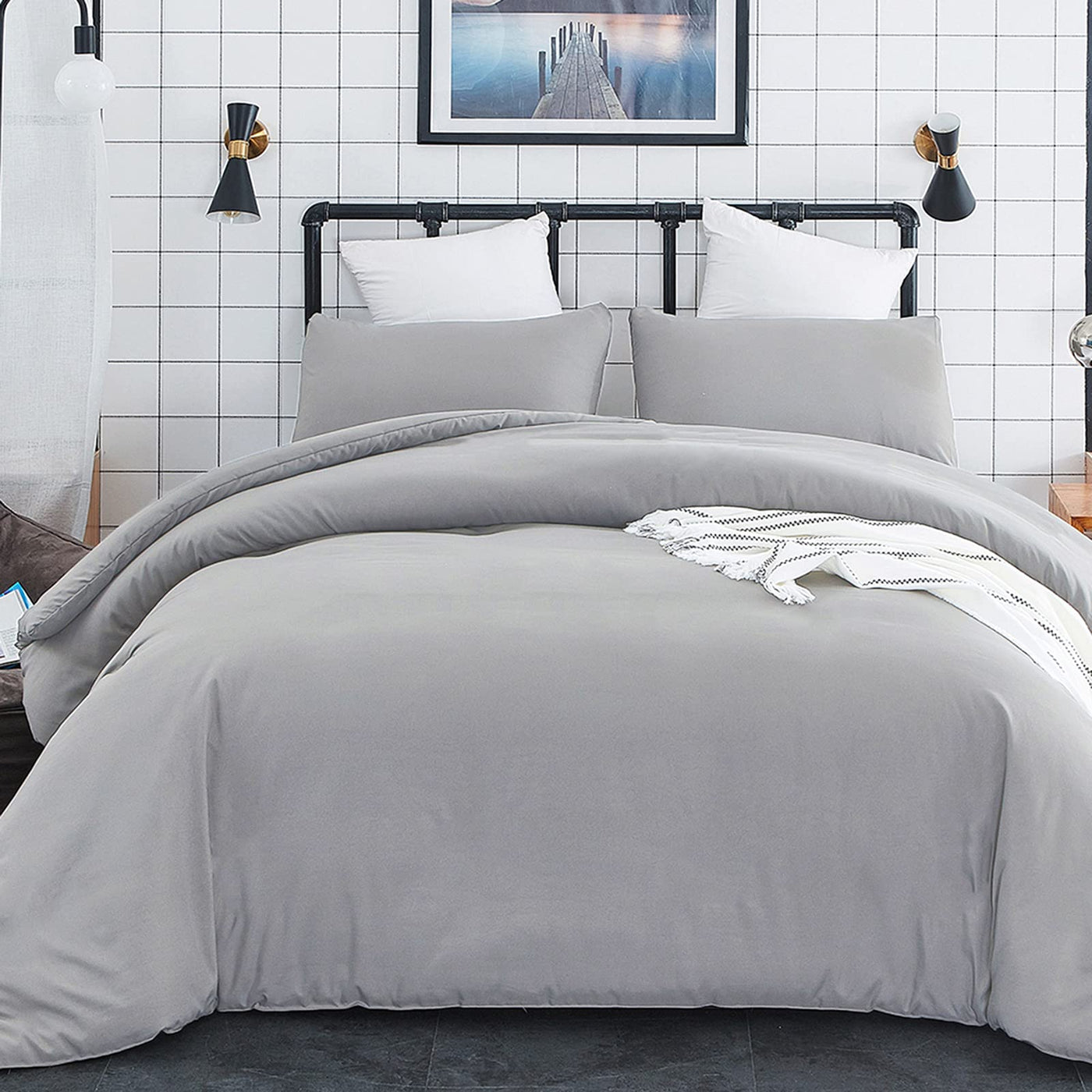 Whatyou Can Get 1 X Silver Gray Comforter 2 X Silver Gray Pillowcase(No Filling) Feature: Premium Weave To Provide The Ultimate Durability And A Smooth Texture Pretty Print, Vivd Hues And Feel-Good Cotton Fabric Are An Irresistible Combination Firm Delicate Seam Strength Effectively Last A Long Lifetime Specifications: Material: Cotton Fill Size:Comforter 90X90 Inches Pillowcases 20X26 Inches Weight:54 Lbs Colour: Background Off White Black Grid Cleaning Method: Machine Washable Wash Instruction: Machine Wash Cold Separately On Gentle Cycle Tumble Dry On Low And Dont Bleach Whats More About: We Want You To Feel This Comforter Set Is The Perfect Match For Your Home Any Questions Or Concerns, Please Contact Us Immediately Our Cotton Comforter Is Compressed During Transportation, So Please Pat The Surface To Restore Fluffy After You Received It