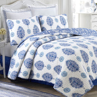 Cozy Line Home Fashions 100% Cotton Paisley Leaf Medallion Navy Blue White Reversible Quilt Bedding Set, Bedspread, Coverlet Lig