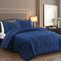Cozy Line Home Fashions Navy Blue Velvet Basketweave Luxurious Velveteen Velour Super Soft Quilt Bedding Set, Coverlet, Bedsprea